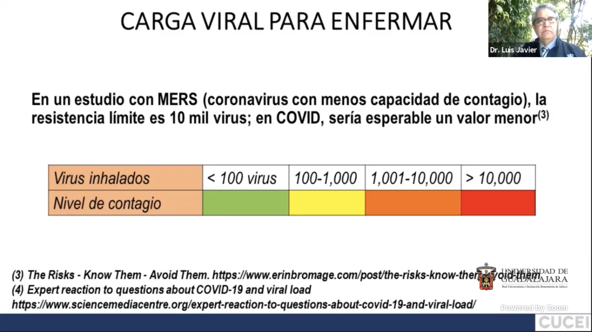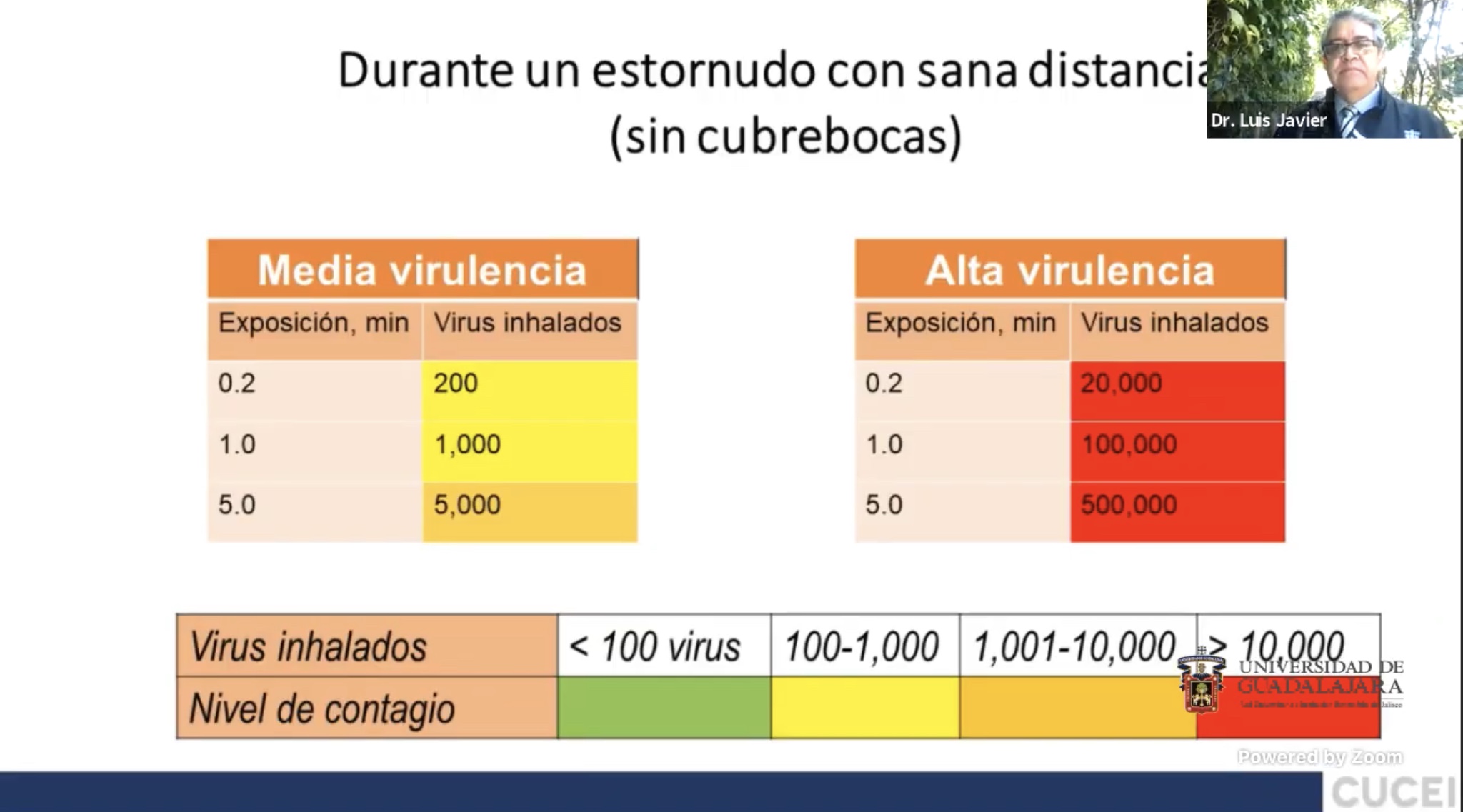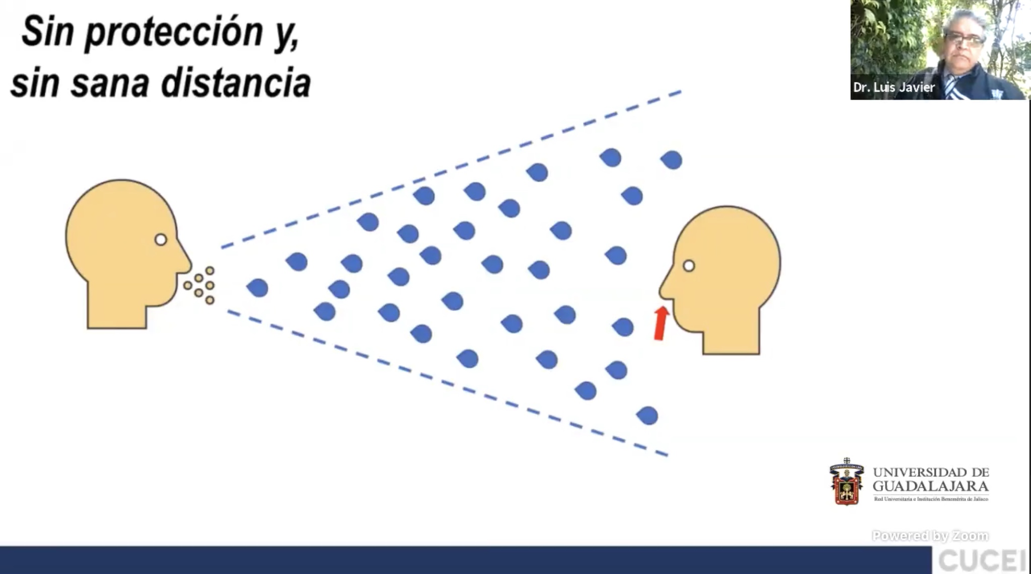 La efectividad de la sana distancia y los filtros sanitarios fueron cuestionados por el doctor Luis Javier González Ortiz, Coordinador del doctorado en Ciencias Químicas, del Centro Universitario de Ciencias Exactas e Ingenierías (CUCEI), durante su conferencia “¿Cómo protegernos del COVID19? Una visión científicamente soportada”.