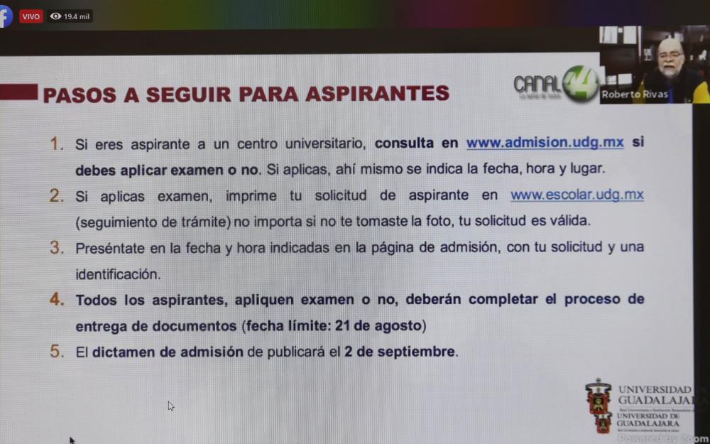 Rivas Montiel recordó que en el sitio www.admision.udg.mx pueden consultar si deben aplicar examen y, si es así, verificar hora, fecha y lugar. Más información en www.gaceta.udg.mx.
