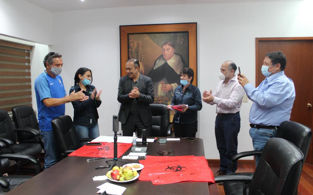 “En el escenario actual de la pandemia pensamos en que es demasiado importante saber cómo manejar los residuos peligrosos, y Vitruplastik nos apoyó. Estas bolsas son de suma importancia para no contagiar a otras personas”, detalló Meza Díaz, y agregó que en la gestión de la donación también participó el maestro Miguel Ángel Moyrón Paredes, del Departamento de Ingeniería Industrial.