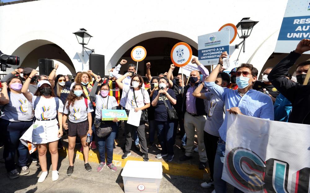 El Secretario General del Sindicato Único de Trabajadores de la Universidad de Guadalajara (SUTUdeG), licenciado José de Jesús Becerra Santiago; el Secretario General del Sindicato de Trabajadores Académicos de la Universidad de Guadalajara (STAUdeG), licenciado Jesús Palafox Yáñez y el Presidente de la Federación de Estudiantes Universitarios (FEU), Francisco Javier Armenta Araiza, hablaron en favor de la autonomía universitaria, la educación, la ciencia y la salud.