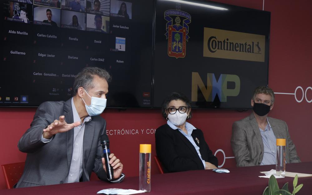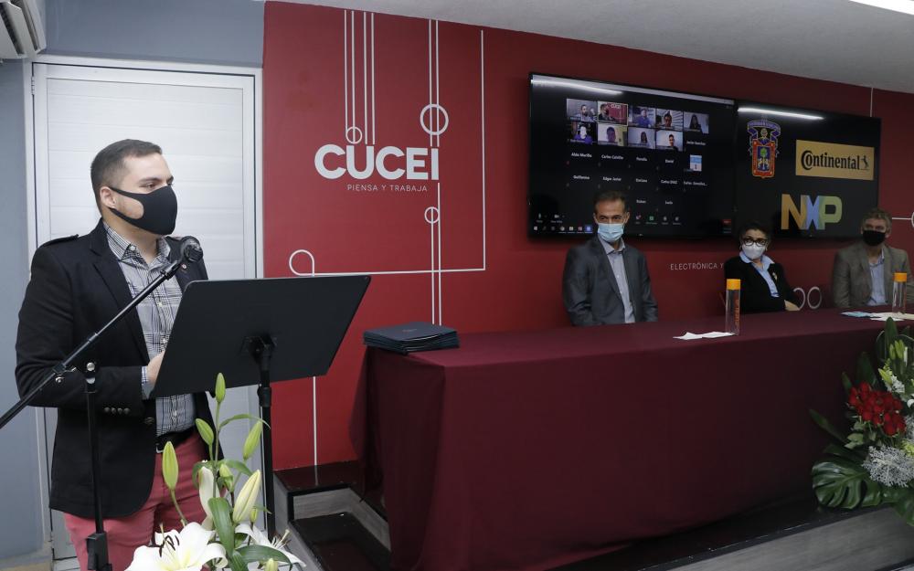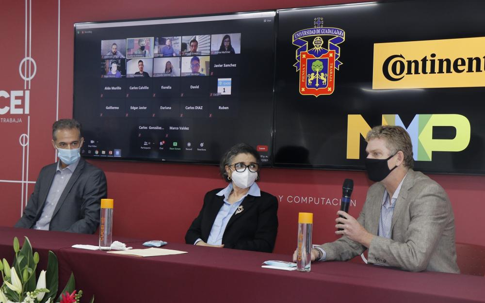 Después de 7 meses finalizó este diplomado que busca generar talento en la industria automotriz a partir de la colaboración entre Continental, CUCEI Y NXP. La Dra. Ruth Padilla Muñoz rectora de nuestro centro universitario, Marc Richter director de NXP Semiconductors y Edú López San Vicente Director de Investigación y Desarrollo Continental , entregaron a los estudiantes de este diplomado su certificado y aprovecharon para reconocer la necesidad de promover la vinculación entre las universidades y la industria.