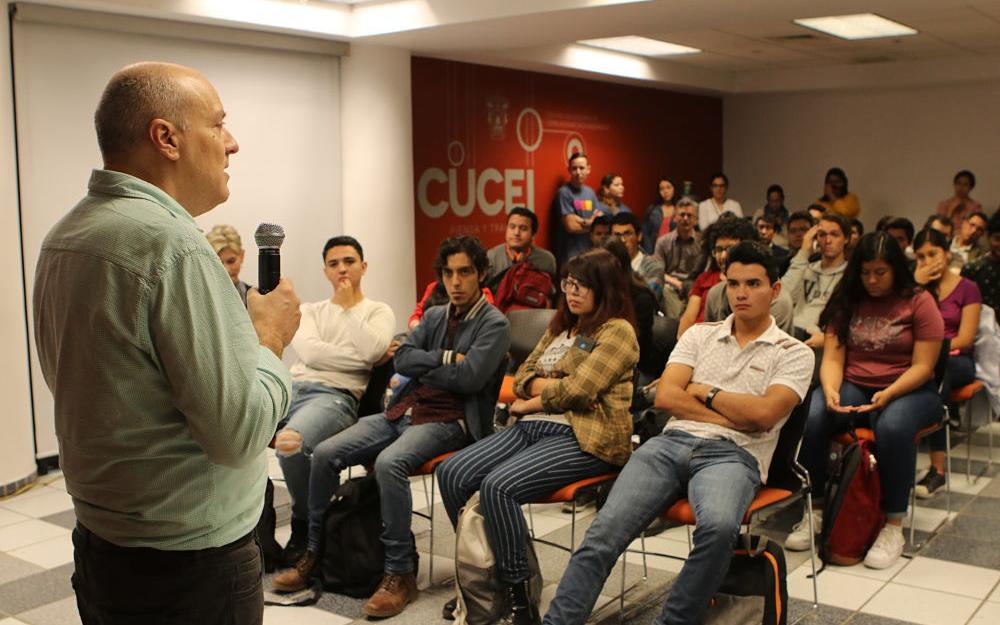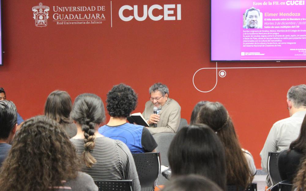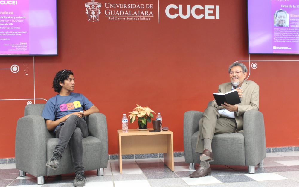 Las visitas de Élmer Mendoza y Alberto Casas son actividades que forman parte de Ecos de la FIL en CUCEI, una iniciativa de este centro universitario que busca acercar a escritores y divulgadores de ciencia a universitarios para que descubran la relación entre la ciencia y la literatura.
