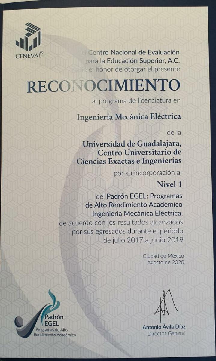 Carrera Acreditada por CACEI Reconocimiento Padrón EGEL Programas de Alto Rendimiento Académico Nivel 1 Convocatoria: 2016 –2017 Programas de Alto Rendimiento Académico Nivel 1 Convocatoria: 2017–2019 AdjuntoTamaño cacei.jpg1.98 MB Egel 2016-20172.59 MB Egel 2017-2019127.09 KB