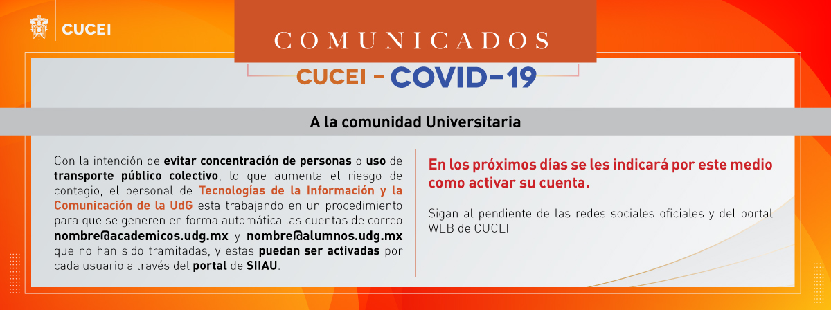 Comunicado Activación en línea cuentas de correo (nombre@academicos.udg.mx y nombre@alumnos.udg.mx) | 244.28 KB |