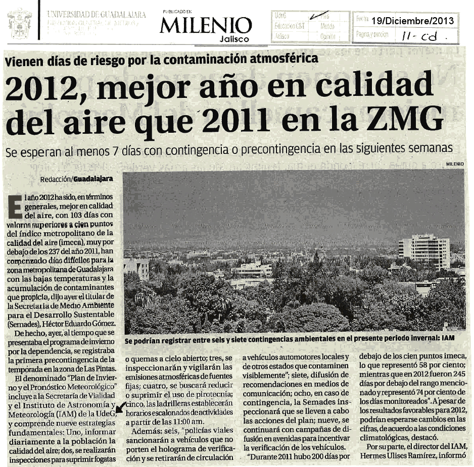 2012, mejor año en calidad del aire que 2011 en la ZMG