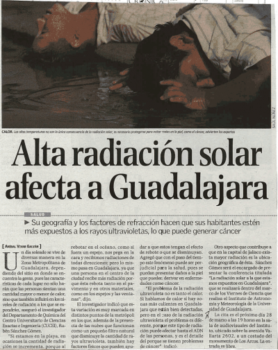 Alta radiación solar afecta a Guadalajara