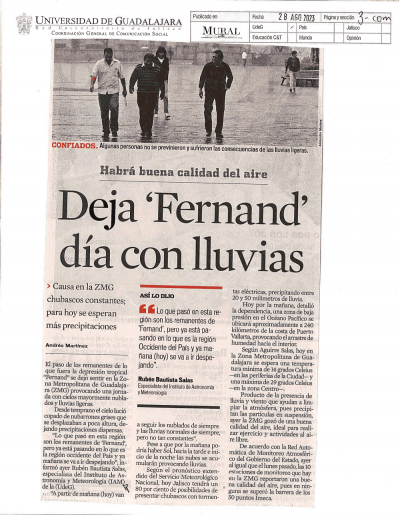 Deja "Fernand" día con lluvias