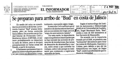 Se preparan para arribo de "Bud" en costa de Jalisco