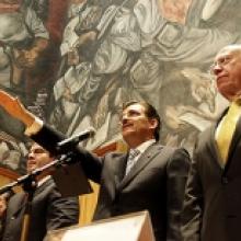 El presidente de la Mesa Directiva del Congreso del Estado de Jalisco, Diputado Miguel Castro Reynoso; el presidente del Supremo Tribunal de Justicia del Estado de Jalisco, Mgdo. Luis Carlos Vega Pámanes. En representación del licenciado Emilio Chuayffet Chemor, Secretario de Educación Pública, el director general de Profesiones de la Subsecretaría de Educación Superior, doctor Jaime Hugo Talancón Escobedo y la doctora Honoris Causa de la UdeG, doctora Luz María Villareal de Puga.
