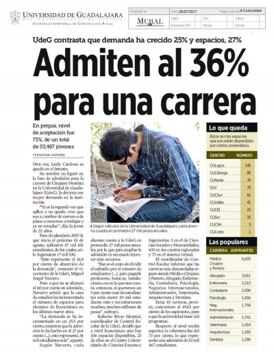 Admiten al 36% para una carrera