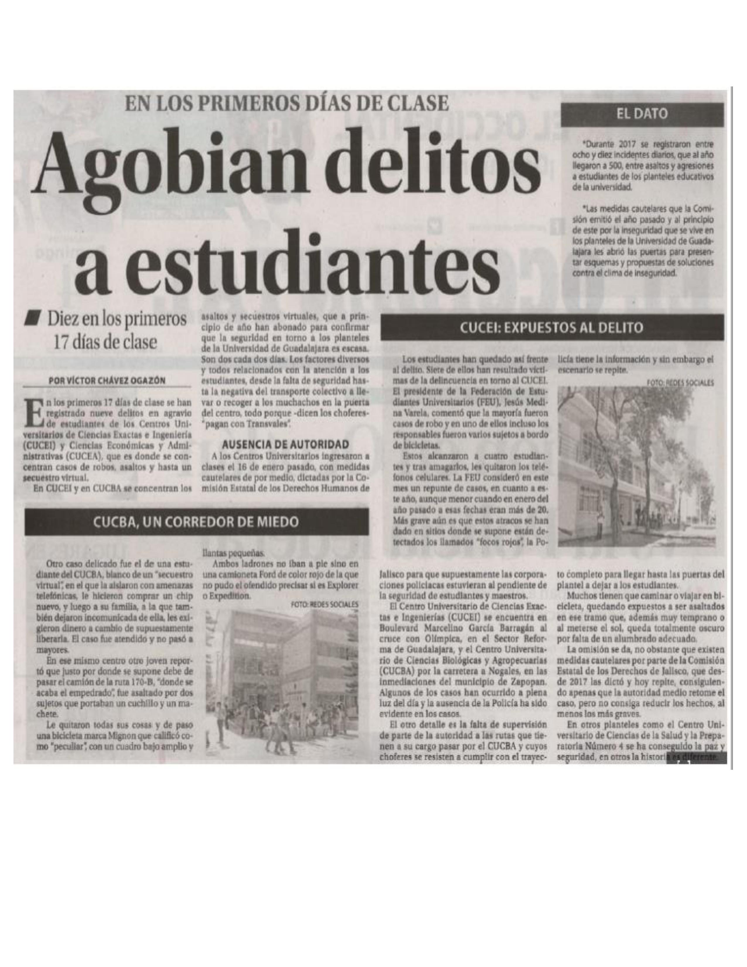 Agobian delitos a estudiantes.