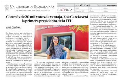 Con más de 20 mil votos de ventaja, Zoé García será la primera presidenta de la FEU