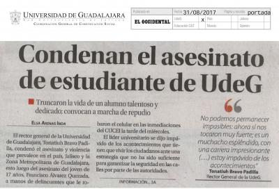 Condenan el asesinato de estudiante de UdeG