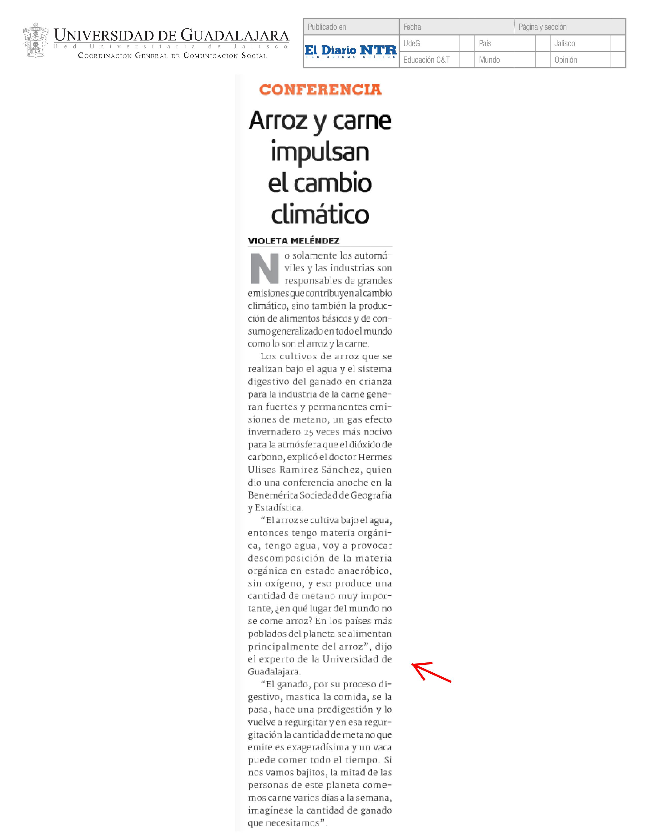 Conferencia: Arroz y carne impulsan el cambio climático
