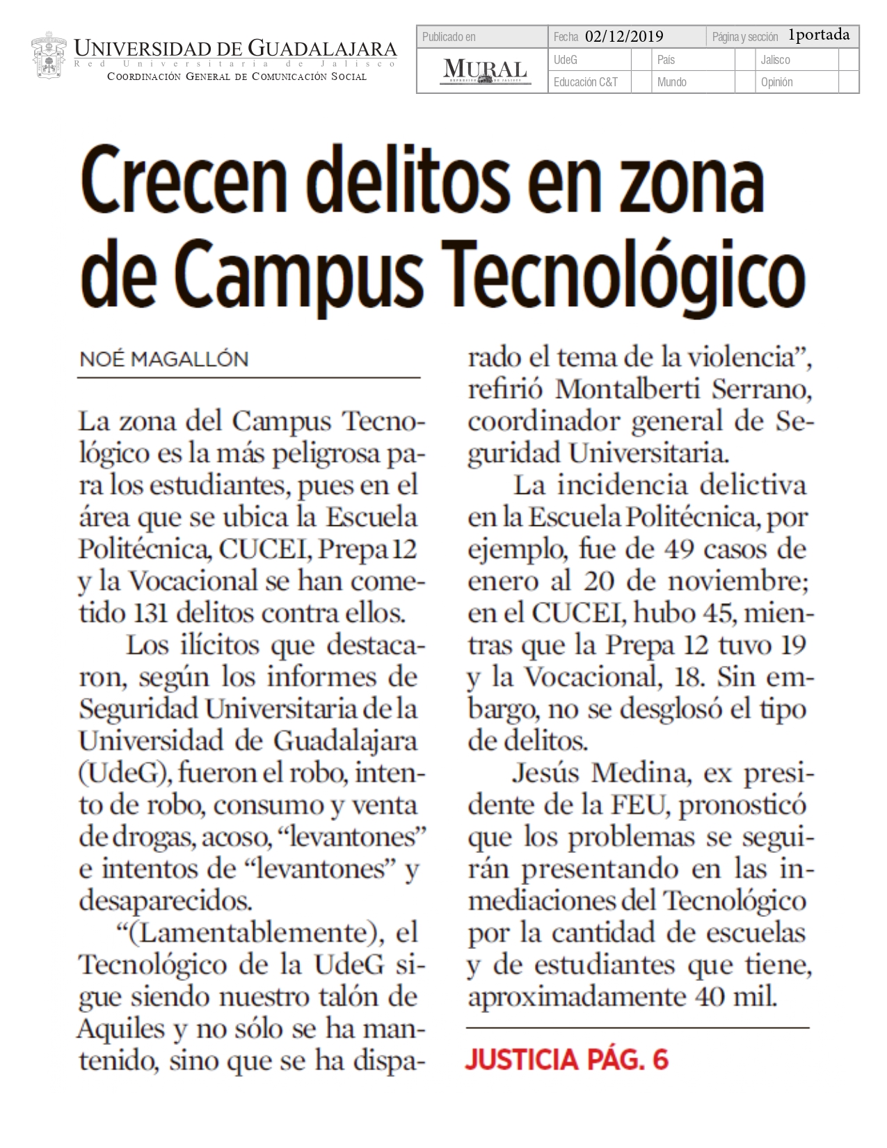 Lunes 02 de Diciembre de 2019