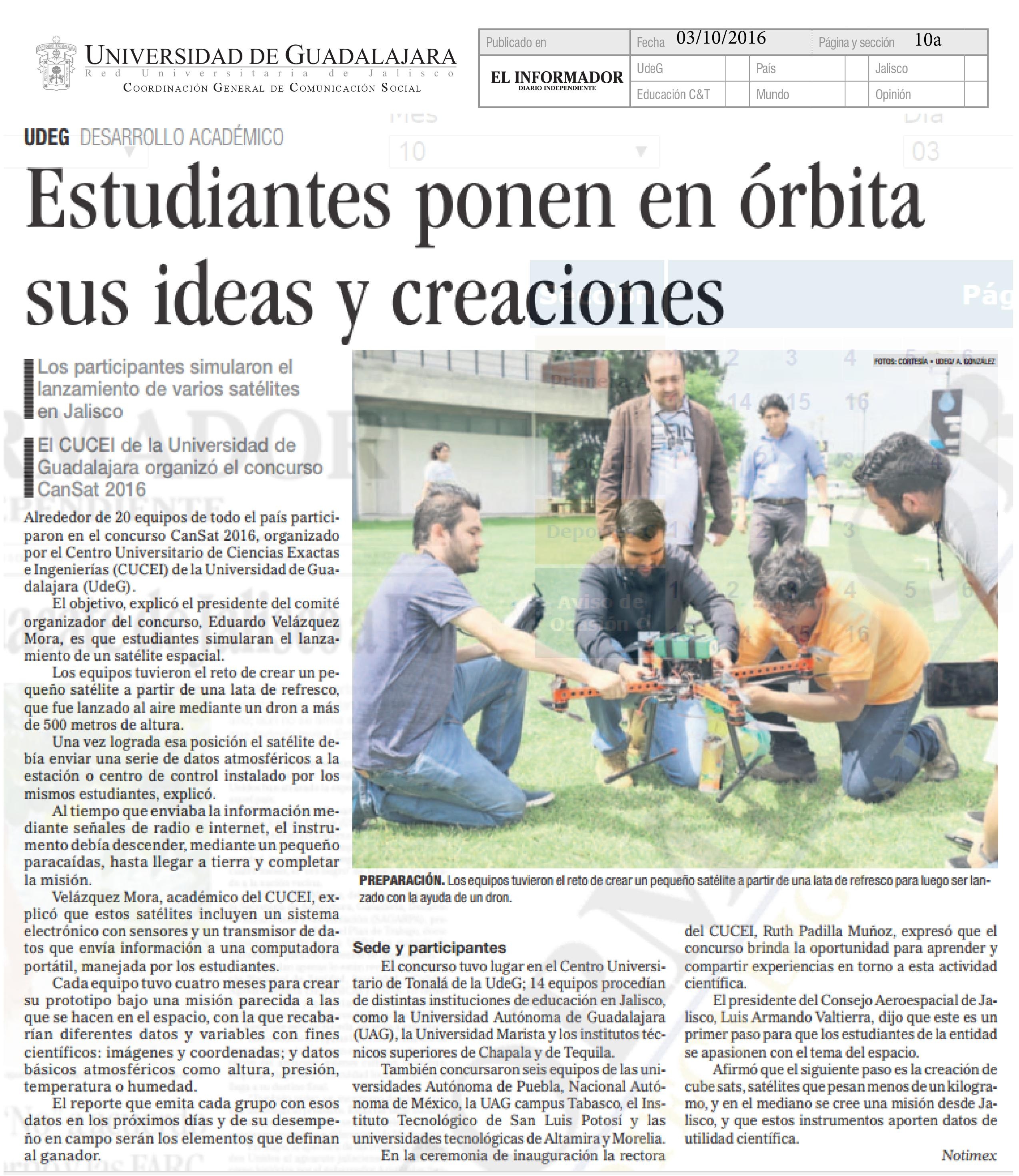 Estudiantes ponen en órbita sus ideas y creaciones