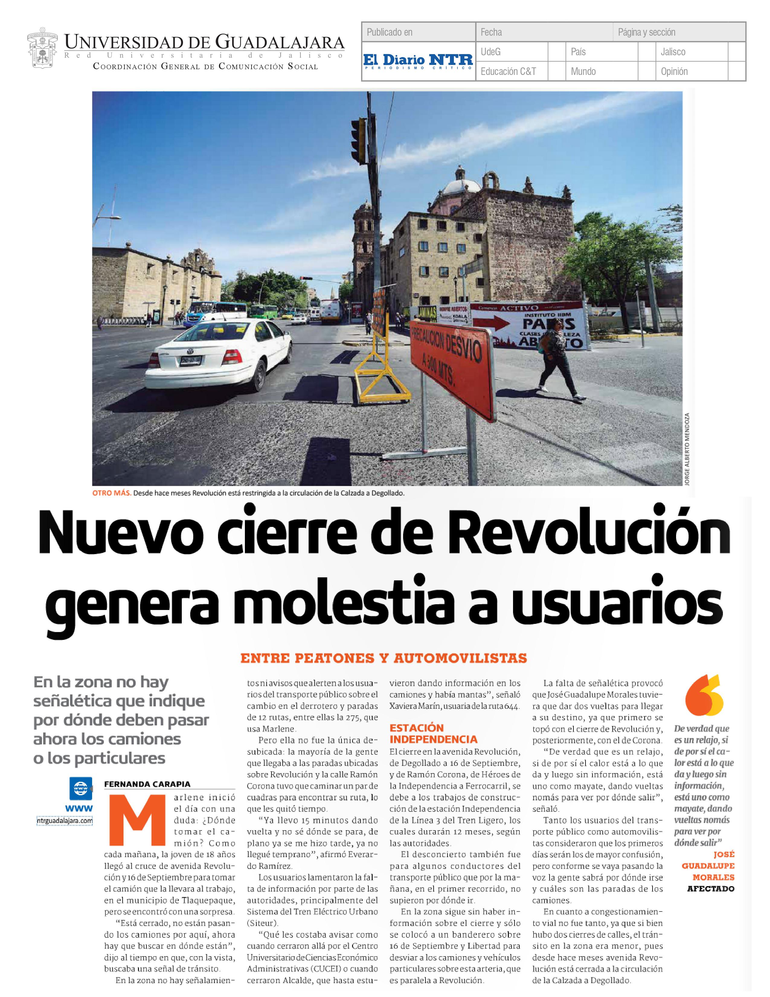 Nuevo cierre de Revolución genera molestia a usuarios