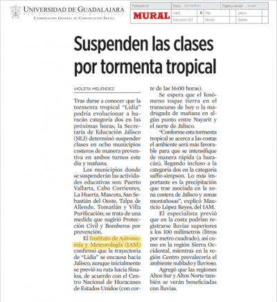 Suspenden las clases por tormenta tropical