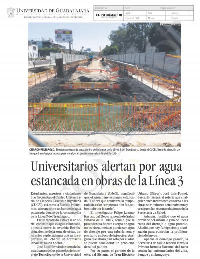Universitarios alertan por agua estancada en obras de la Línea 3