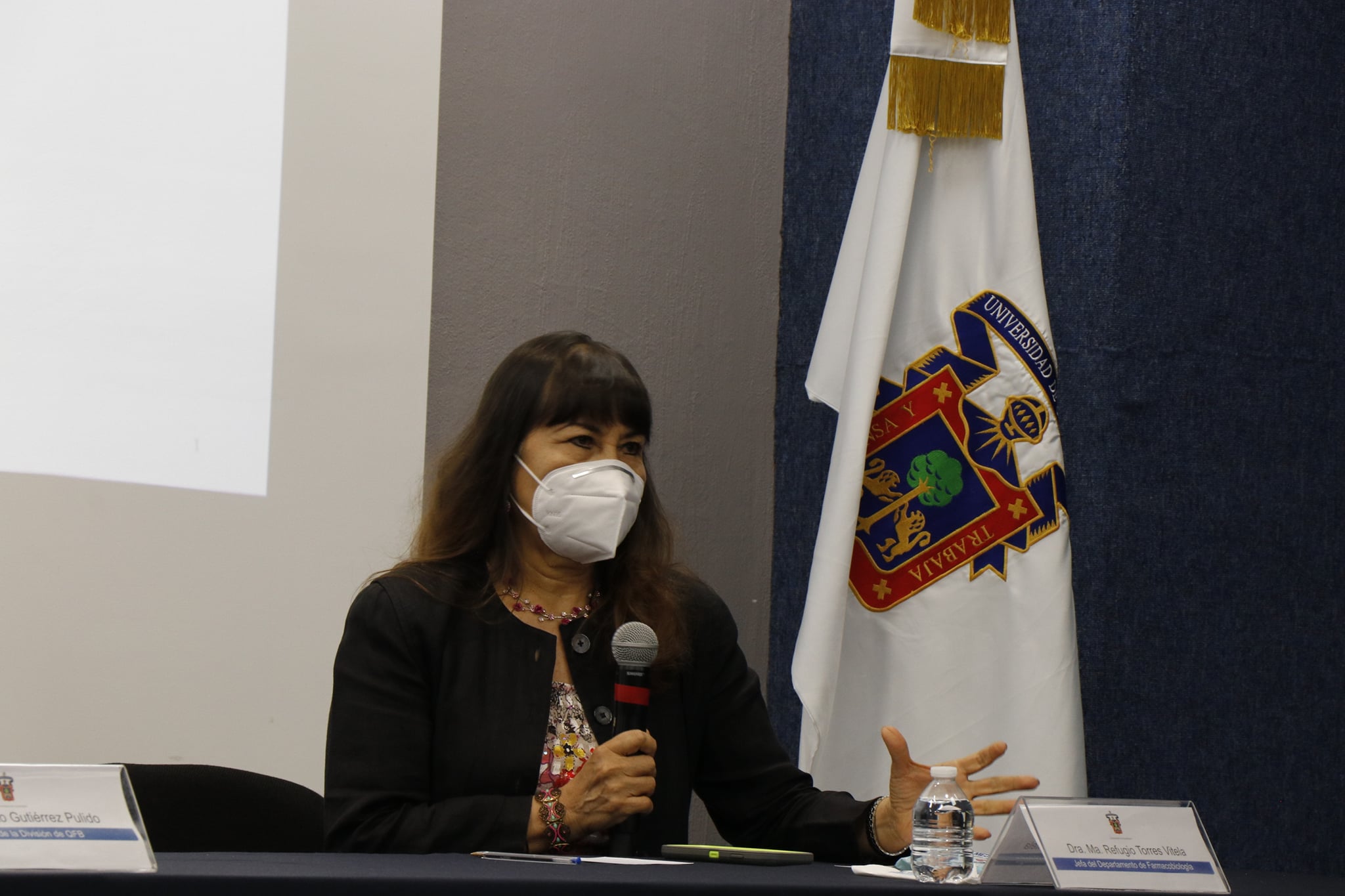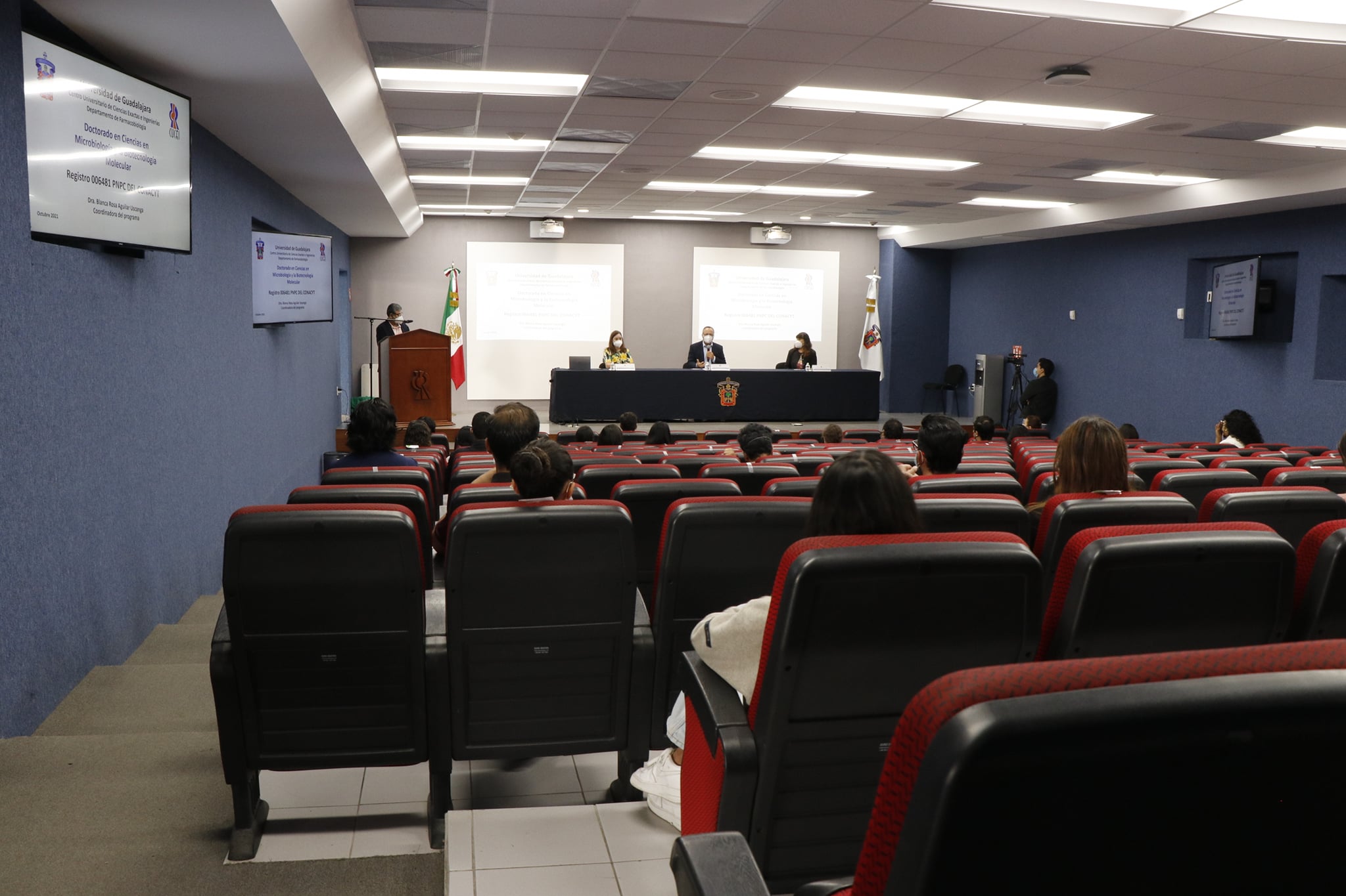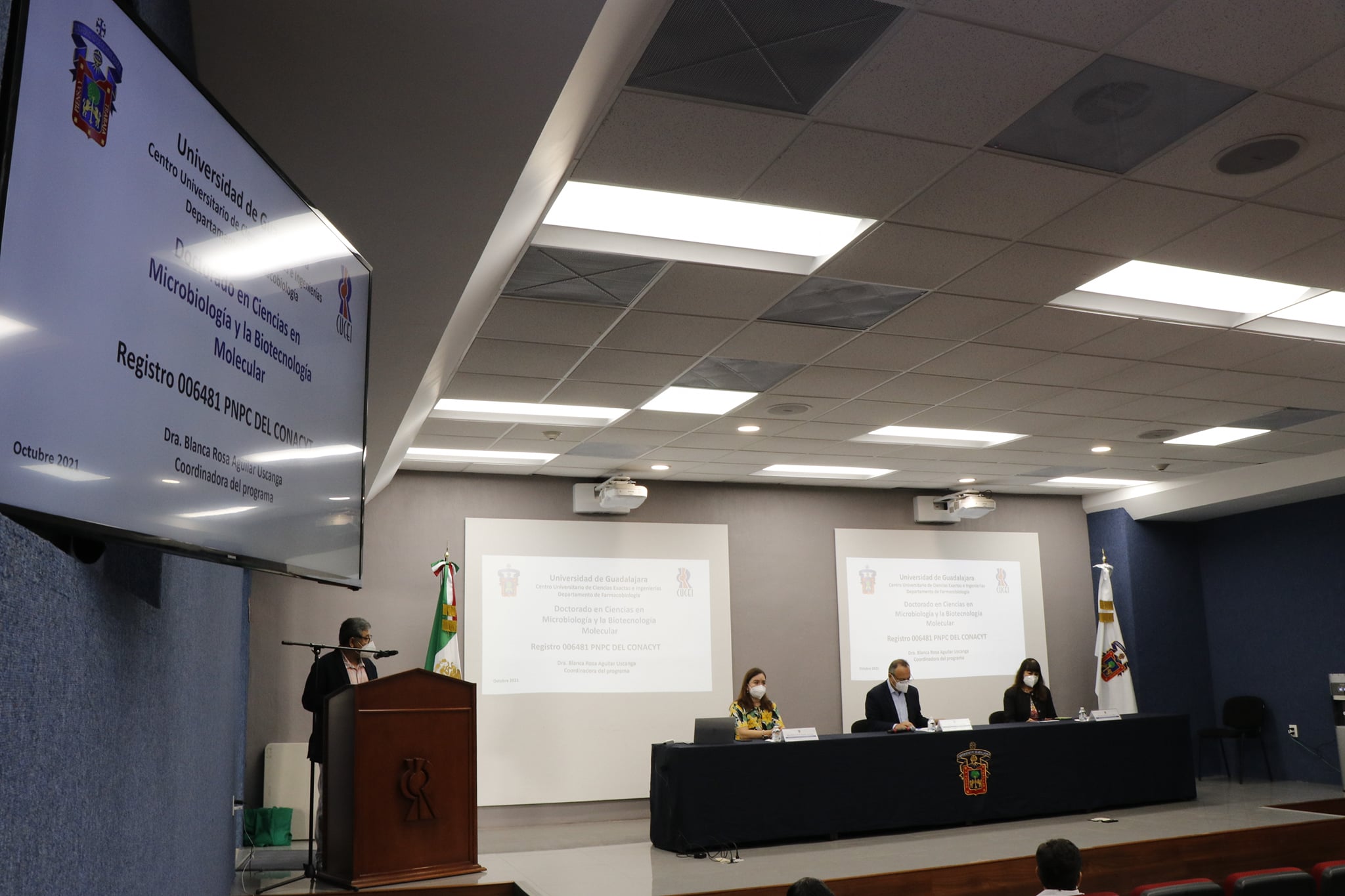 A la inauguración asistieron el Dr. Humberto Gutiérrez Pulido Jefe de la División de Ciencias Básicas en representación de la Dra. Ruth Padilla Muñoz rectora de este Centro Universitario; la Jefa de departamento de Farmacobiología la Dra. Refugio Torres Vitela y la coordinadora del programa de doctorado la Dra. Blanca Rosa Aguilar Uscanaga.