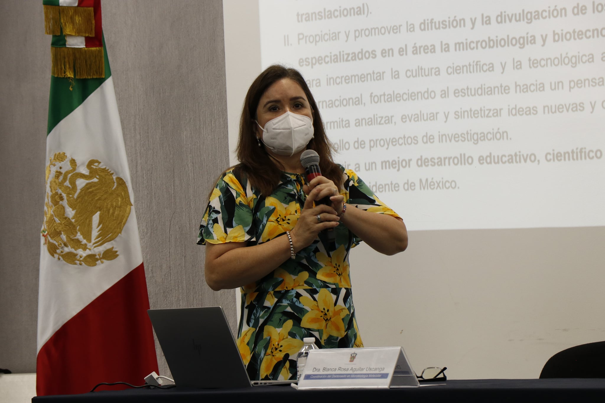La coordinadora, Dra. Blanca Rosa Aguilar presentó parte de los objetivos y plan de estudio de este Doctorado de nueva creación y reconocido con el PNPC en este año. Dictaminado en el 2020 el Doctorado en Microbiología y la Biología Molecular tiene un enfoque a la investigación con modalidad escolarizada y con una duración de 8 semestres.