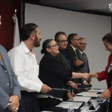 Además estuvieron presentes el Dr. Carlos Pelayo Ortiz, Secretario Académico, el Mtro. Jaime Gutiérrez Chávez, Secretario Administrativo y el C. Ricardo Alberto Vázquez Alonso, Representante sindical de los Trabajadores Administrativos del CUCEI