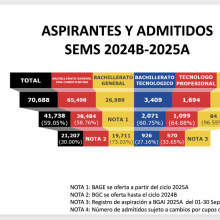 Añadió que en el caso de aspirantes a pregrado, se observó que fueron admitidas más mujeres (53.61 por ciento, y 45.88 por ciento de hombres); además de que se registró que 0.19 por ciento de las y los nuevos aspirantes se perciben como personas no binarias.