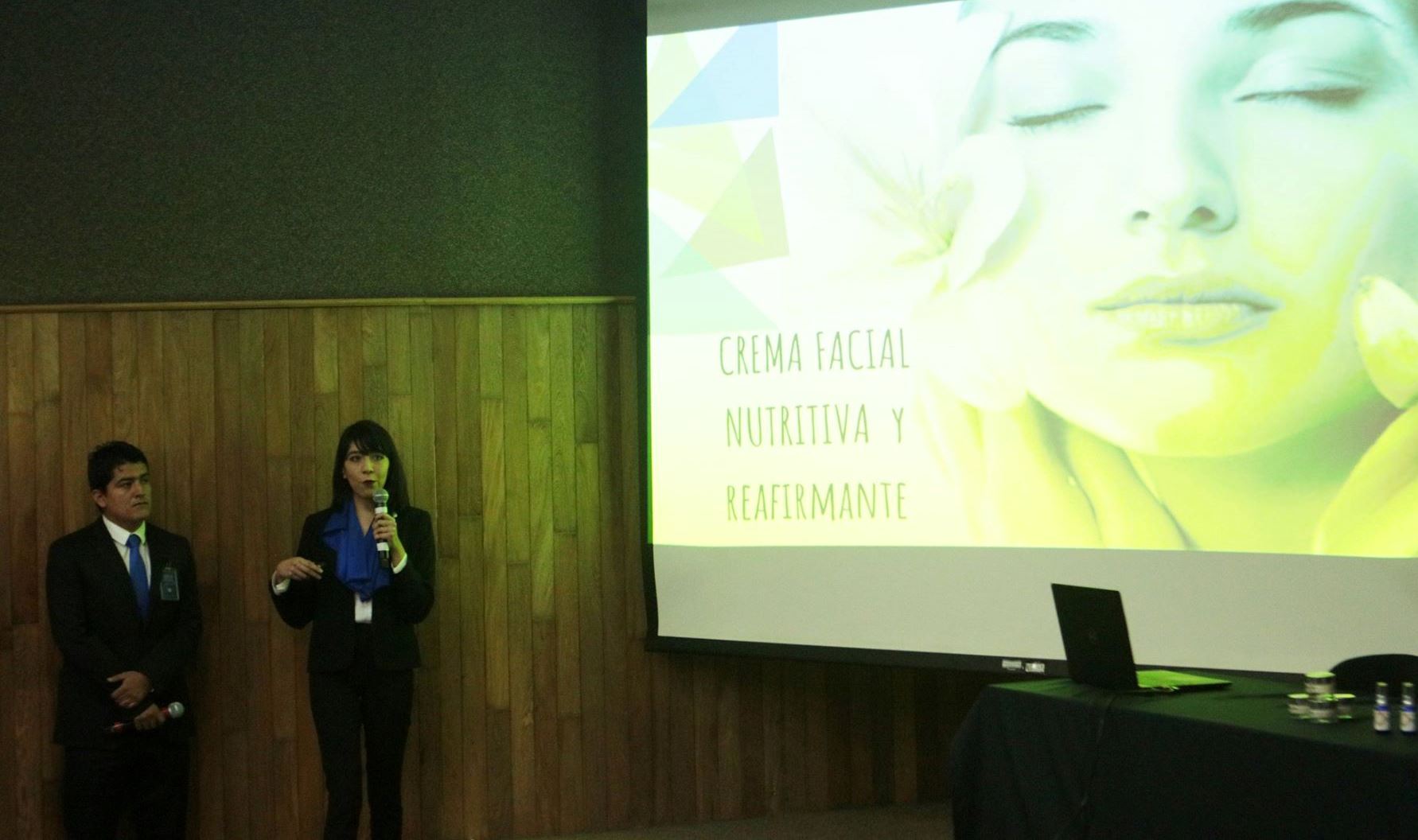 BEAUTY COSMETIC´S SA, equipo compuesto por Dayana Gallegos, Brenda Sánchez y Edgar Uribe, quienes presentaron el producto “Oasis”, una crema facial reafirmante y nutritiva.