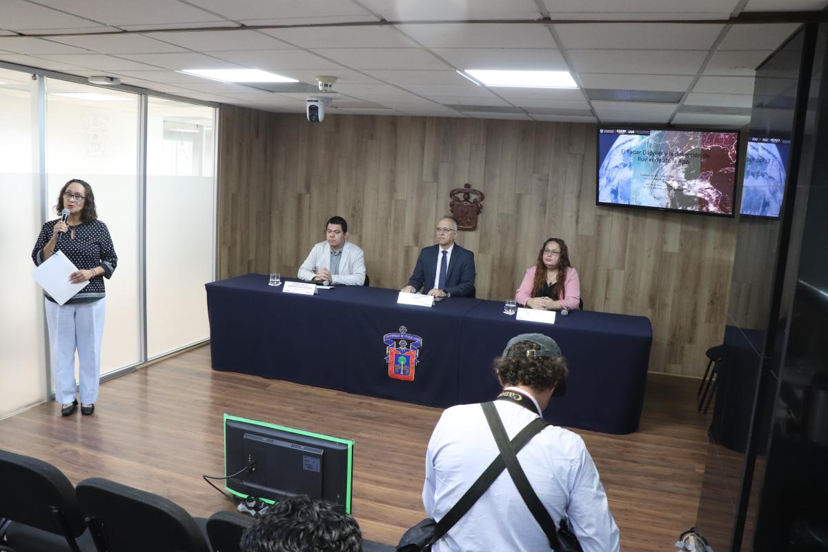 “Las imágenes del satélite nos ayudan a ver dónde se está formando la nube y dónde se está desarrollando, pero el radar nos dice dónde ya está lloviendo y hacia dónde va la tormenta. Esto nos permite tomar decisiones a corto plazo”, declaró la maestra Alma Delia Ortiz Bañuelos, responsable del Monitoreo de nubes del IAM.
