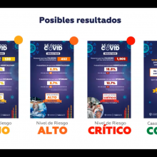 Los resultados se clasifican en nivel bajo, alto crítico y poco común, en el que se informa al usuario el porcentaje de posibilidad de ser intubado u hospitalizado, así como el número de defunciones, considerando los casos o perfiles similares al suyo y de acuerdo con los datos a nivel federal.