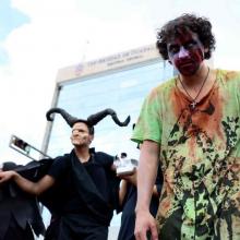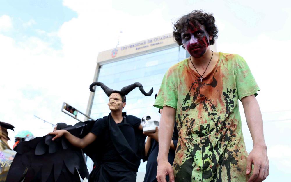 Catrinas, esqueletos, bestias, momias, vampiros, gitanas, seres de fantasía, monstruos de las películas de horror y otros personajes pintorescos invadieron las calles de Guadalajara. Se trata de los alumnos del Centro Universitario de Ciencias Exactas e Ingenierías, particularmente de las carreras de Ciencias Químicas, quienes con sus disfraces participaron en el tradicional “Aquelarre 2015”.