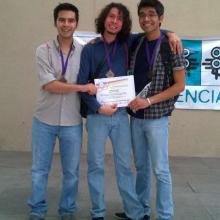 Son Moisés Orencio Ahumada Murillo y Emilio Erándu Ceja Cárdenas, egresado y estudiante de la licenciatura en Matemáticas y Adrián Francisco González Gutiérrez, de la licenciatura en Ingeniería en computación, quienes realizaron el proyecto “Interpretación falso/verdadero de la actividad eléctrica cerebral”, en el área superior en la categoría de Ciencias de la ingeniería.