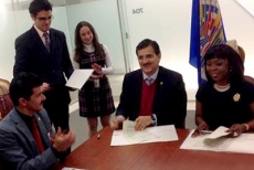 En el marco de este encuentro, la Universidad de Guadalajara y la Organización de Estados Americanos (OEA) firmaron hoy un convenio; de esta forma la UdeG responde a la invitación de participar en el programa de becas de la OEA, y se compromete a recibir y apoyar a los estudiantes que sean destinados por parte de este organismo, con la condonación de inscripción y matrícula en programas de maestría y doctorado.