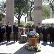 Los restos del ingeniero Jorge Matute Remus fueron reubicados este lunes en la Rotonda de los Jaliscienses Ilustres; las diversas ceremonias fueron encabezadas por el Gobernador de Jalisco, el Rector General de la Universidad de Guadalajara y el presidente municipal de Guadalajara. A los diversos actos en su honor acudieron familiares, entre ellos su viuda Esmeralda Villaseñor de Matute y sus hijos Elena, Esmeralda y Pedro; universitarios, representantes de los poderes Legislativo y Judicial, ex alcaldes de Guadalajara, ex gobernadores, ex rectores de la UdeG y políticos. El homenaje inició en el paraninfo de Enrique Díaz de León, a las 10:00 horas, con una sesión solemne para honrar su memoria; luego, siguió el recorrido por avenida Juárez hasta llegar al edificio de la Telefónica; continuó en el Ayuntamiento de Guadalajara y finalmente, en la rotonda. En el paraninfo universitario se recibieron los restos del ingeniero Matute Remus, en el 102 aniversario de su natalicio y a casi doce años de su fallecimiento. Hubo cuatro discursos y diversas guardias de honor en las que participaron autoridades universitarias y gubernamentales, familiares, del Consejo de Rectores, gremios universitarios y del Colegio de Ingenieros. Posteriormente, se realizó el cortejo fúnebre por avenida Juárez; los restos fueron trasladados en un vehículo abierto. En el edificio de la Telefónica se realizó un breve acto, en el que se explicó la técnica con la que Matute Remus lo desplazó trece metros, con el fin de concluir la ampliación de esta avenida. En el patio del Palacio Municipal de Guadalajara se montó una guardia de honor, a la que se sumó el cuerpo edilicio. Al término, el presidente municipal tapatío, ingeniero Ramiro Hernández García, entregó a la viuda la bandera con el escudo de Guadalajara. En la rotonda, destino final, se dijeron también varios discursos en torno al homenajeado. El Rector General de la UdeG, maestro Itzcóatl Tonatiuh Bravo Padilla, resaltó a Matute Remus como apreciado y admirado profesor con casi cuatro décadas de ejercicio. Como Rector (1949-1953) abrió las puertas de la universidad, sin distingo de la escuela de origen. Modernizó y mejoró la institución, creó y dirigió el Instituto Tecnológico, fundó las carreras de Trabajo Social y Arquitectura. Fue el impulsor de la educación tecnológica en el estado. Destacó su compromiso con la educación y el servicio público. Al leer la semblanza del homenajeado acentuó también sus aportaciones como presidente municipal (1953-1955), en la que resaltó la planeación, la fundación de instituciones del estado (como el SIAPA) y los premios y reconocimientos que recibió, como las Palmas Académicas del Gobierno de Francia, el Premio Nacional de Ingeniería y el Reconocimiento de la American Water Works Association. El Gobernador de Jalisco, maestro Aristóteles Sandoval Díaz, señaló que el ingeniero Matute Remus es ejemplo del compromiso universitario con Jalisco, como ingeniero y servidor público construía soluciones. Destacó que movió el edificio de la Telefónica sin interrumpir servicios, trajo el suministro de agua desde Chapala, trabajó en la modernización de la ciudad, en nuevas avenidas, carreteras, centros educativos, edificios e infraestructura urbana. Esmeralda Matute Villaseñor resaltó la preocupación de su padre por el bienestar social. Fue un padre exigente que les inculcó el respeto, la ética y el gusto por los libros, la música clásica, la regla de cálculo, el Lago de Chapala y los campamentos. Aunque tuvo múltiples ocupaciones siempre tuvo tiempo para la familia. Jorge fue de profesión y corazón de ingeniero, señaló su viuda Esmeralda Villaseñor de Matute. Hombre bueno y sencillo, inteligente y visionario, sabía de las líneas rectas y de la rectitud; de soluciones frente a la adversidad. En seis años de noviazgo epistolar, lo pudo conocer y querer, y tuvo con él 60 años de matrimonio. Fueron también oradores, en los diferentes actos, el mismo Hernández García; el presidente de la mesa directiva del Congreso de Jalisco, diputado Héctor Pizano Ramos, quien leyó el decreto oficial con el que se le declaró benemérito ilustre de Jalisco; sus exalumnos Aristeo Mejía Durán, quien resaltó su trabajo como profesor que acompaña y trasciende y Juan Armando Duarte Alonso, que explicó la técnica que ideó para mover el edificio de la Telefónica y que fue de impacto para la ingeniería local, nacional e internacional. Los restos fueron depositados en un nicho de la rotonda y fue develada (sobre la calle de Liceo) la escultura del también Doctor Honoris causa por la UdeG, en la que carga en los brazos un libro y unos planos, y en la placa se inscribe su nombre, Jorge Matute Remus, “Ingeniero”. - See more at: http://www.udg.mx/noticias/jorge-matute-remus-jalisciense-ilustre-ya-es-...