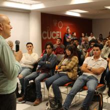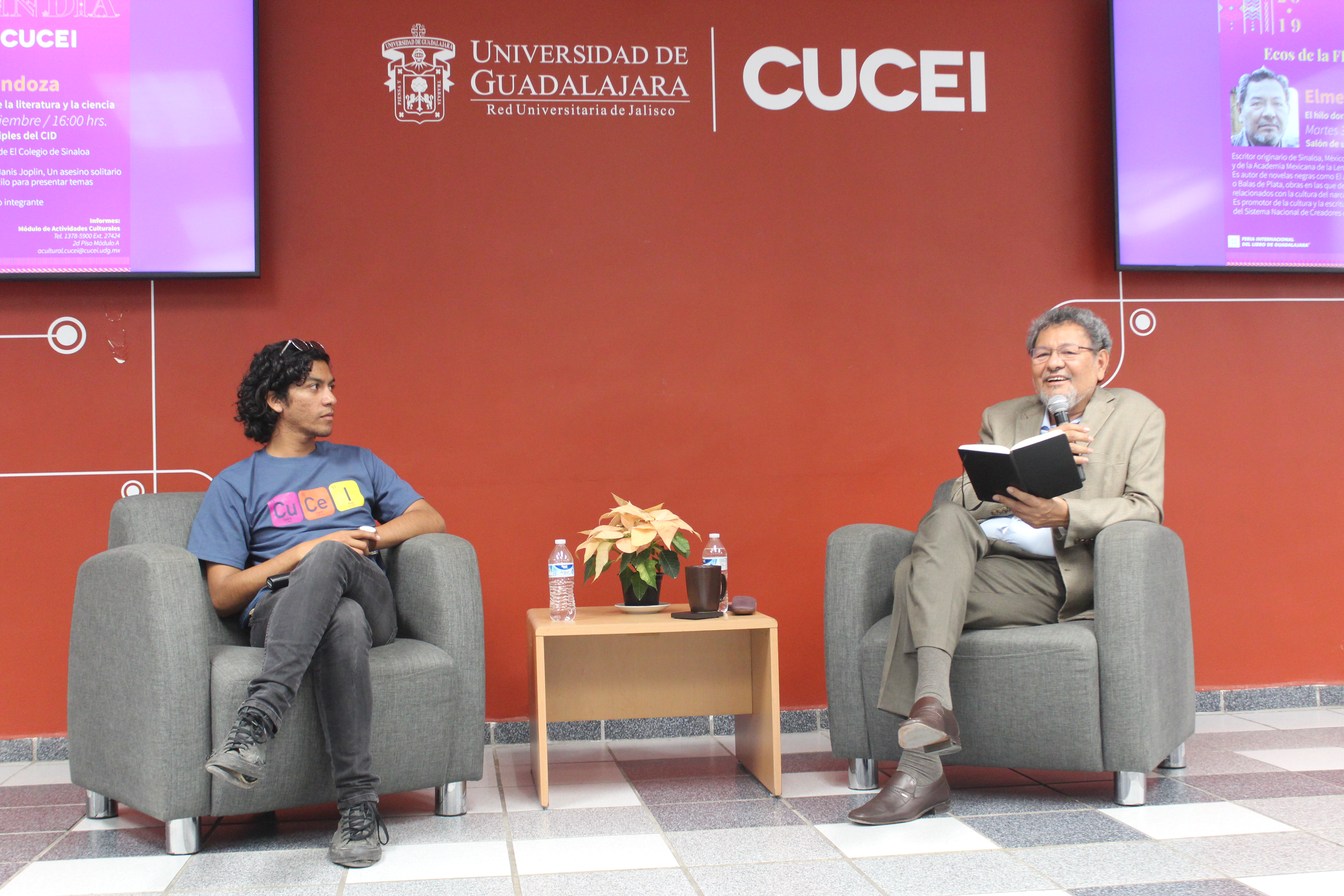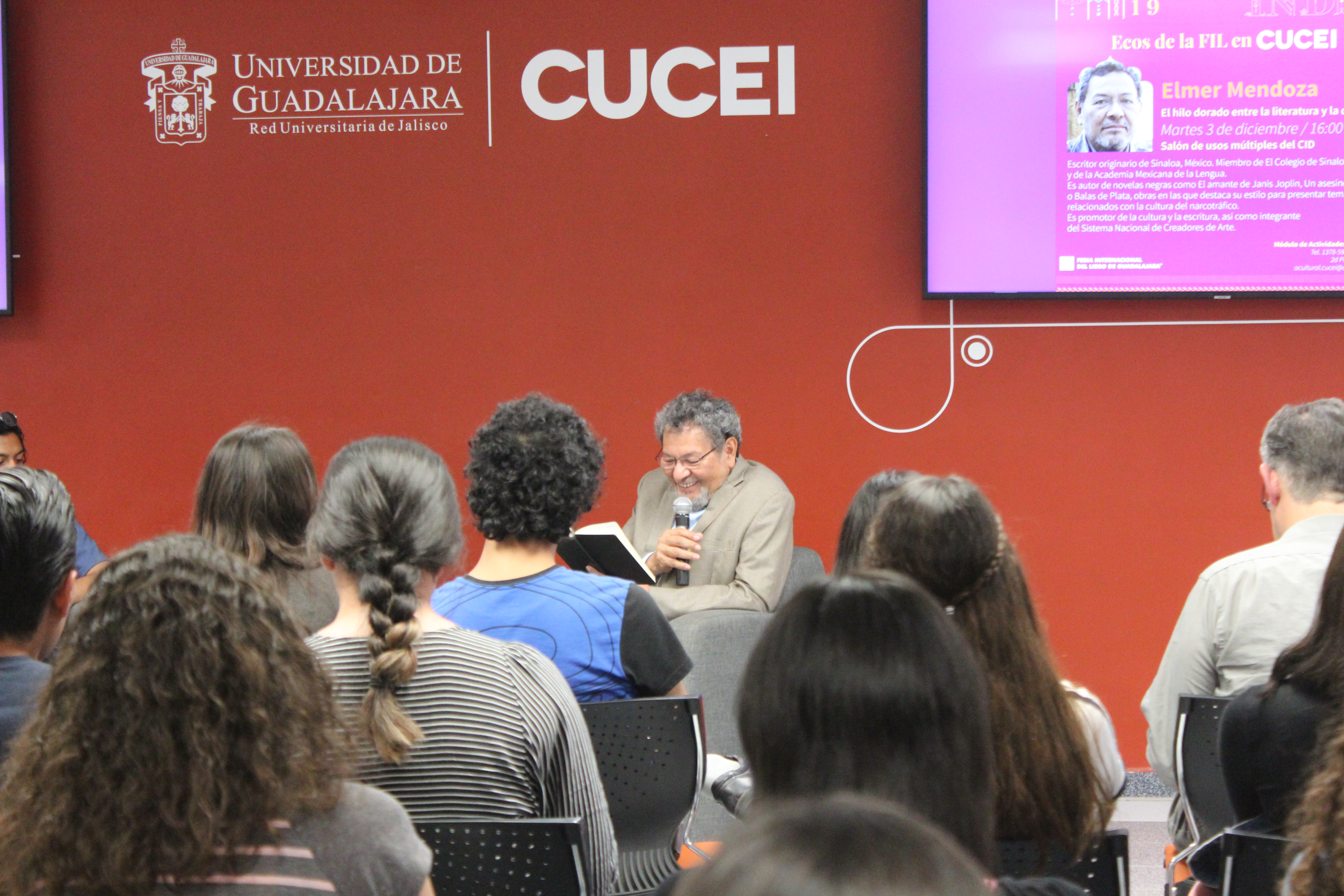 Las visitas de Élmer Mendoza y Alberto Casas son actividades que forman parte de Ecos de la FIL en CUCEI, una iniciativa de este centro universitario que busca acercar a escritores y divulgadores de ciencia a universitarios para que descubran la relación entre la ciencia y la literatura.