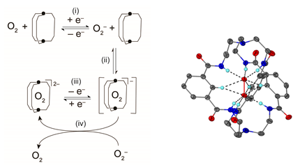 El dianión es estabilizado mediante enlaces fuertes de hidrógeno a grupos N–H de los criptandos hexacarboxamida. Estos aductos pueden obtenerse mediante la reacción de disproporción de KO2 que es asistida por el criptando mismo, o mediante la reducción de O2 con agentes reductores como es el caso de CoCp2. O2 puede generarse de manera cuantitativa mediante la oxidación del aducto de peróxido al ser tratado con DDQ (DDQ = 2,3-Dicloro-5,6-diciano-1,4-benzoquinona).