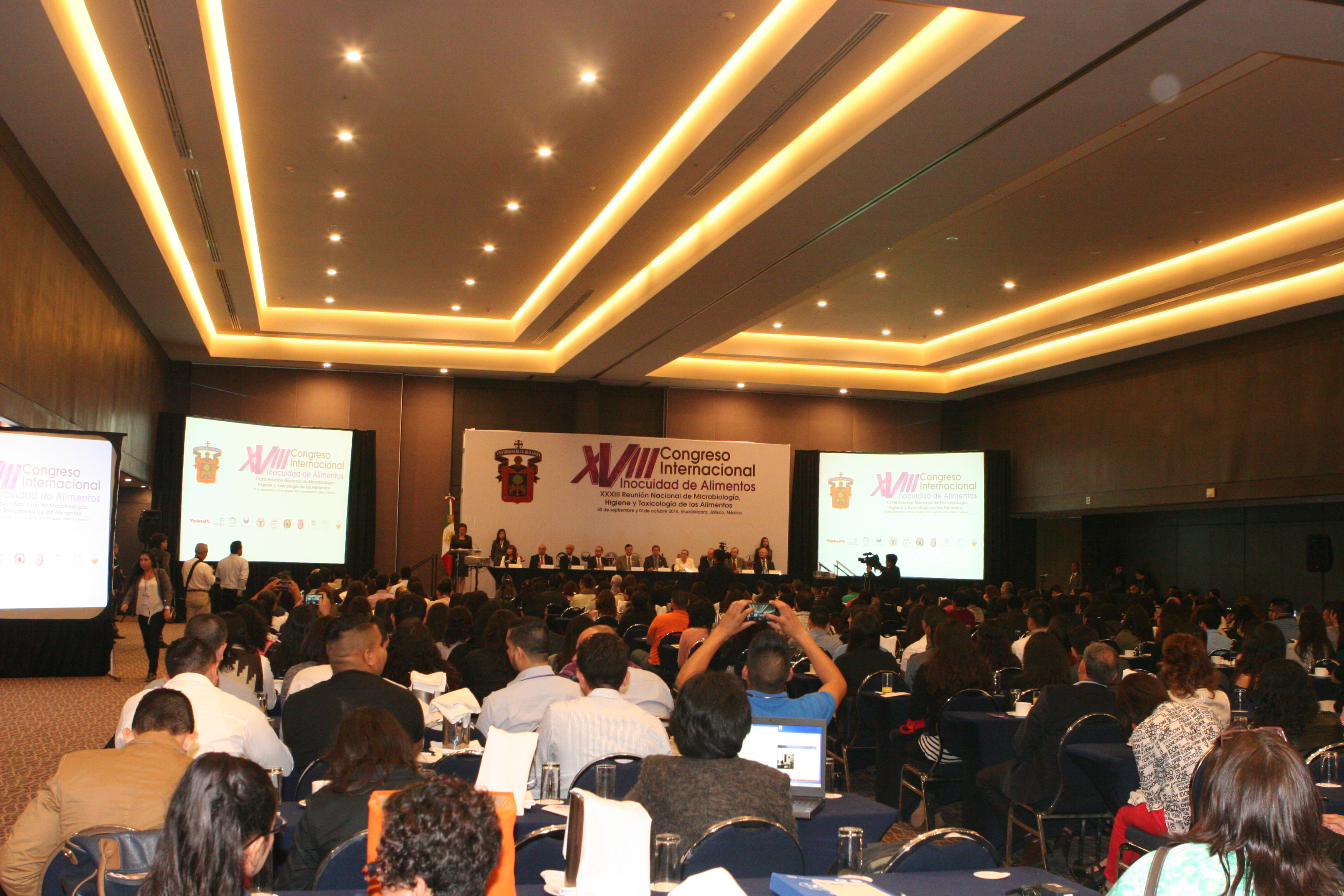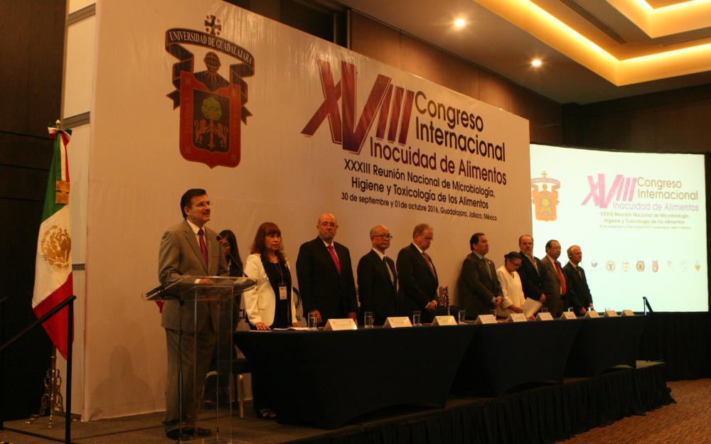 El comisionado para la protección contra Riesgos Sanitarios, doctor Dagoberto García Mejía, en representación del gobernador de Jalisco, habló de la necesidad de promover una entidad sana con estrategias para mantener la inocuidad y un manejo adecuado de alimentos, entre otras cuestiones. A la inauguración asistieron la Rectora del CUCEI, doctora Ruth Padilla Muñoz, funcionarios estatales, científicos nacionales e internacionales y estudiantes.