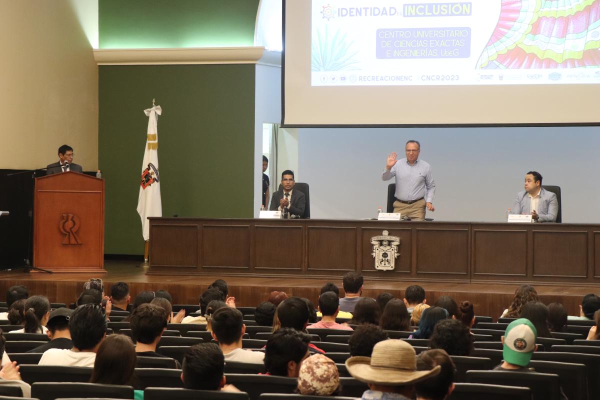 El Dr. Humberto Gutiérrez Pulido Secretario Académico de nuestro Centro Universitario llevó a cabo la inauguración de este evento. Mencionó la importancia que tiene para CUCEI que se lleven a cabo aquí actividades que buscan generar interés y motivar a la comunidad científica para hacer divulgación de la ciencia.