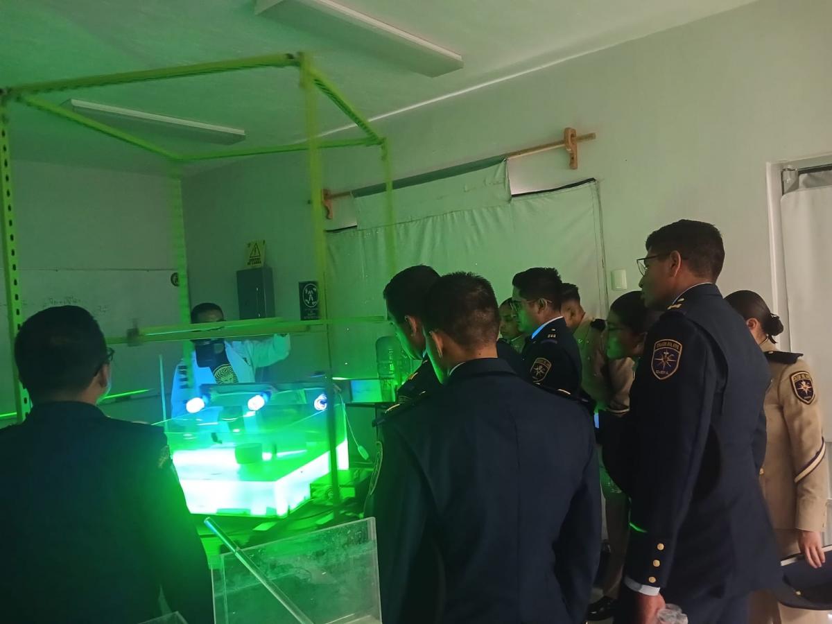 El recorrido inició en el Laboratorio de Automatización y Robótica de Ingeniería Mecánica, donde los cadetes observaron el funcionamiento de robots y sistemas automatizados. Posteriormente, se dirigieron a los Laboratorios de Investigación de Física en el Edificio Y, donde exploraron áreas como Microscopía, Láser, Metalografía, Películas Delgadas y Fluorescencia de Rayos X. Además, visitaron el Laboratorio de Dinámica de Fluidos y el Túnel de Viento, donde se mostró el estudio de la aerodinámica y el flujo de fluidos.