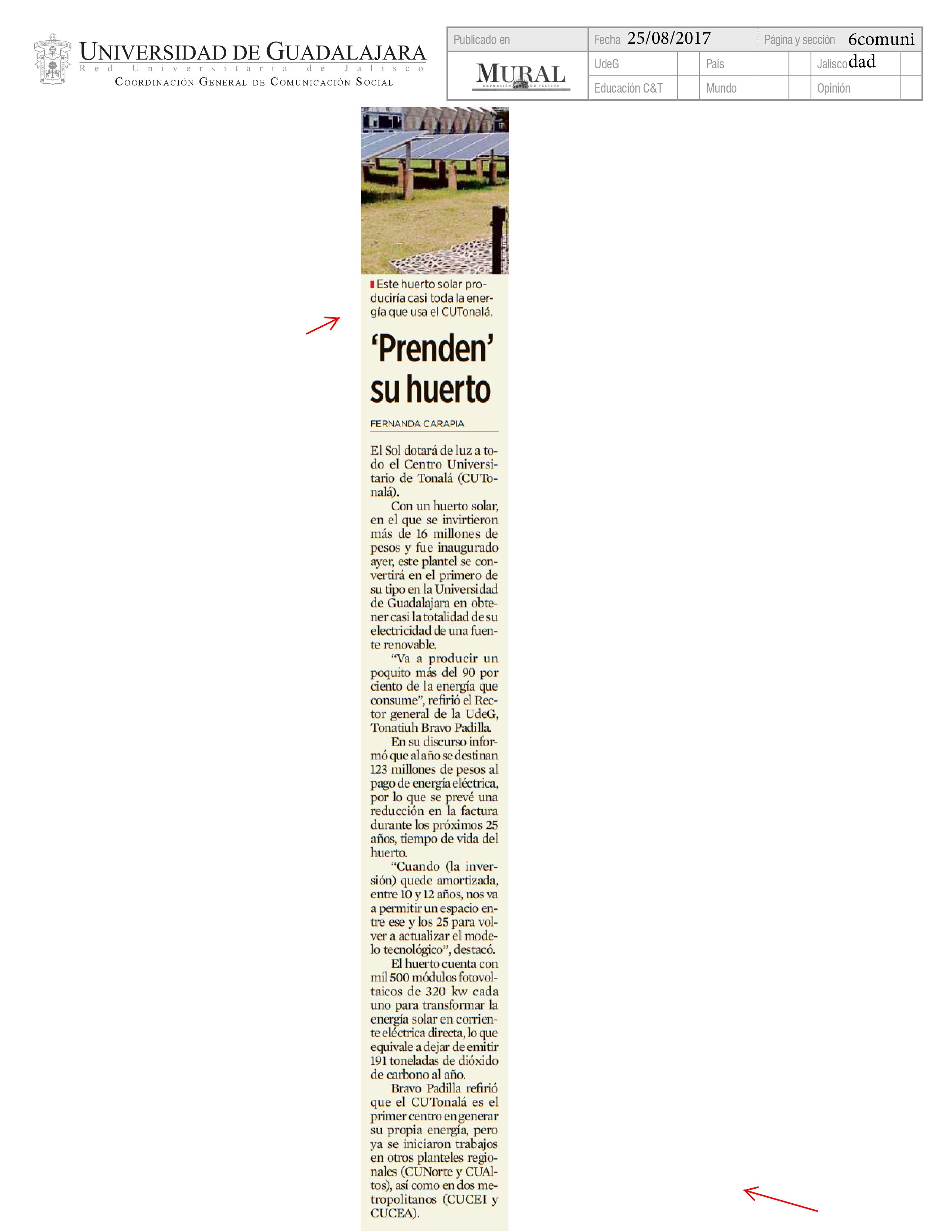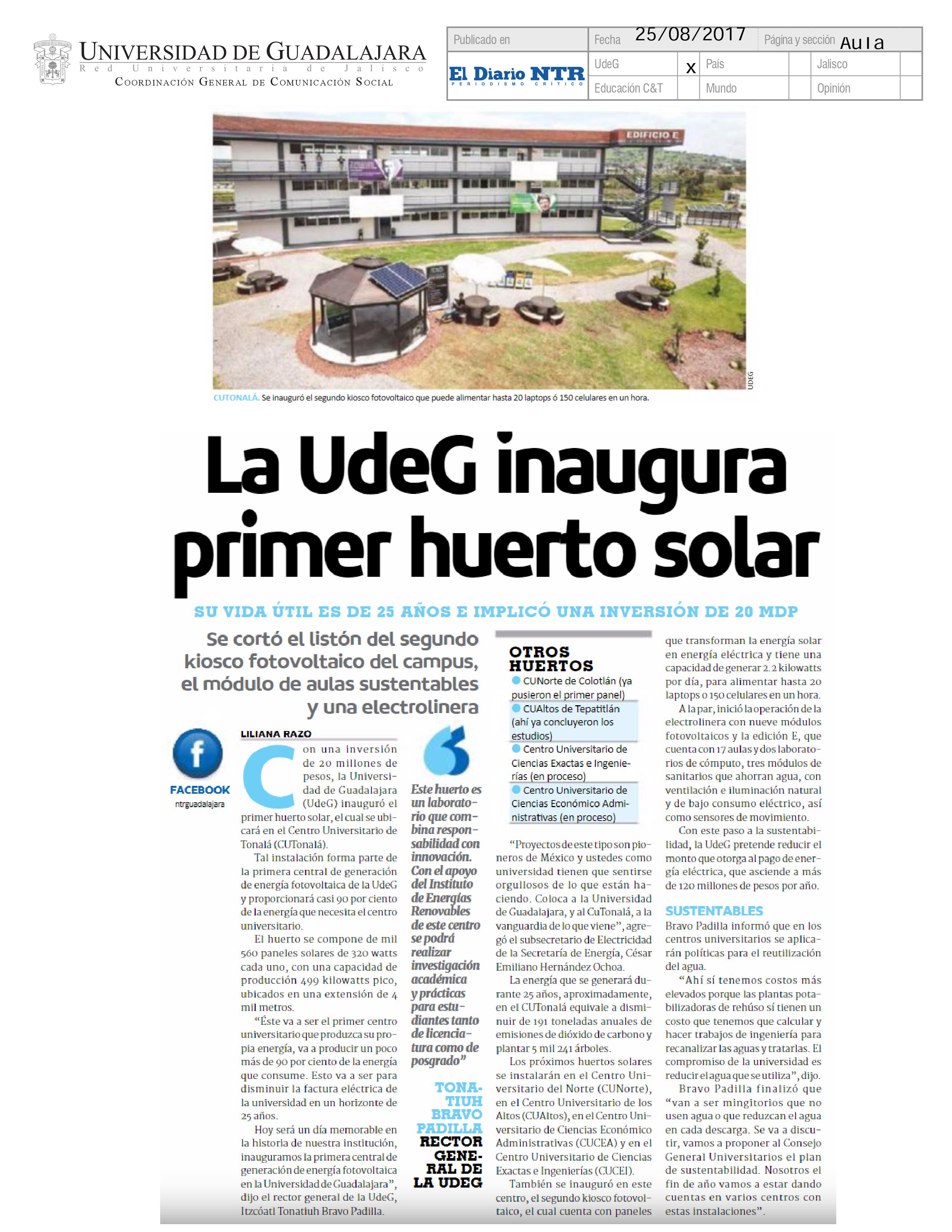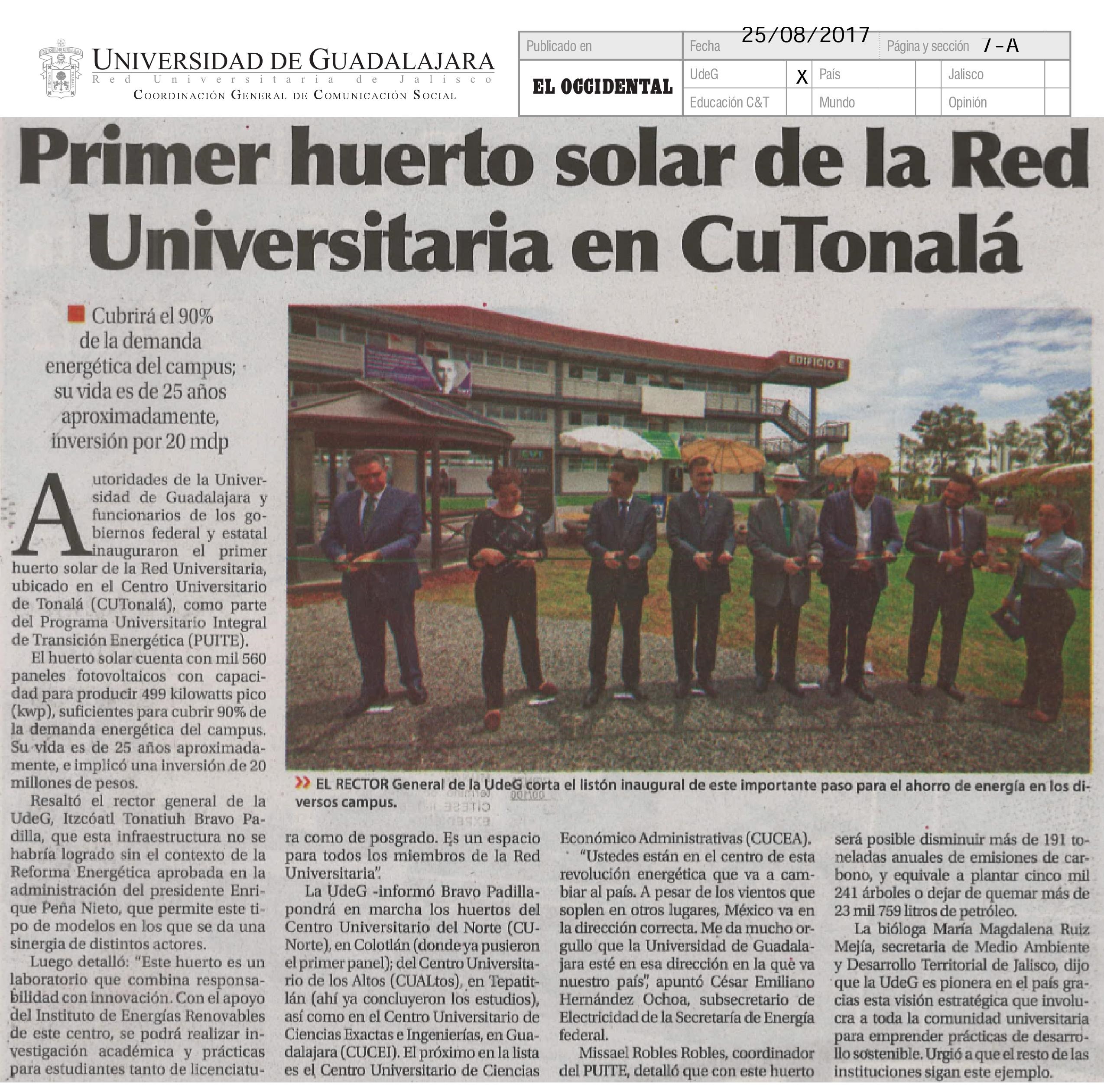 La UdeG inaugura primer huerto solar