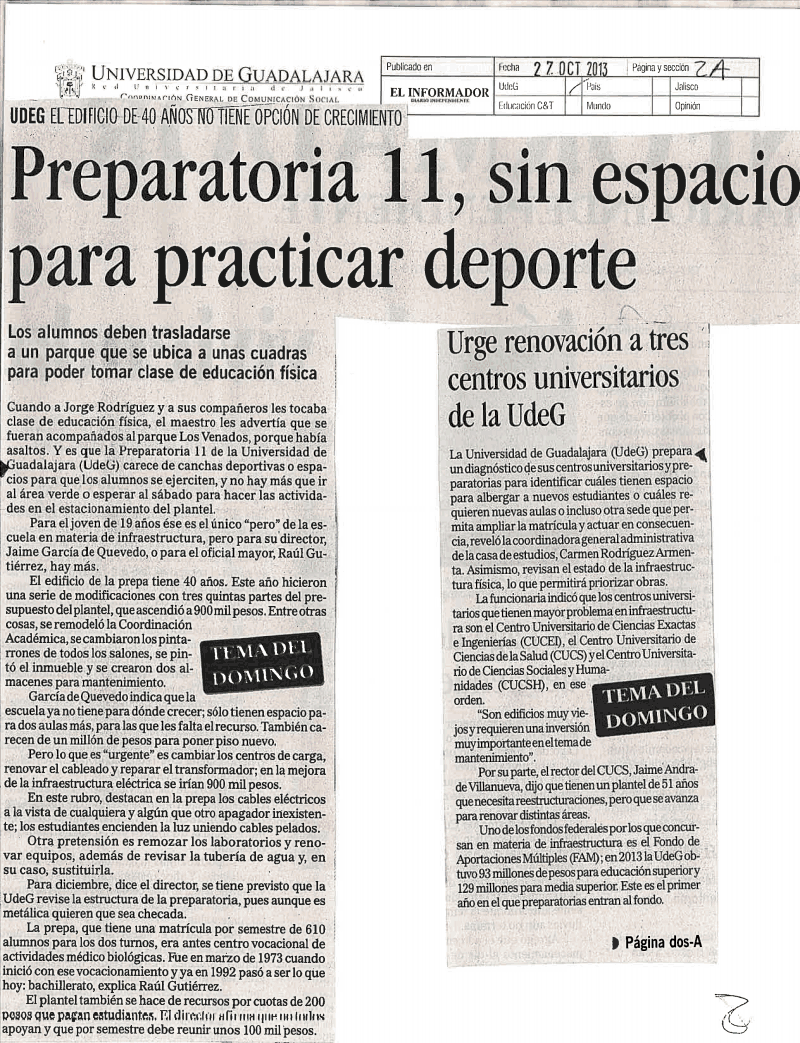 Domingo 27 de Octubre de 2013