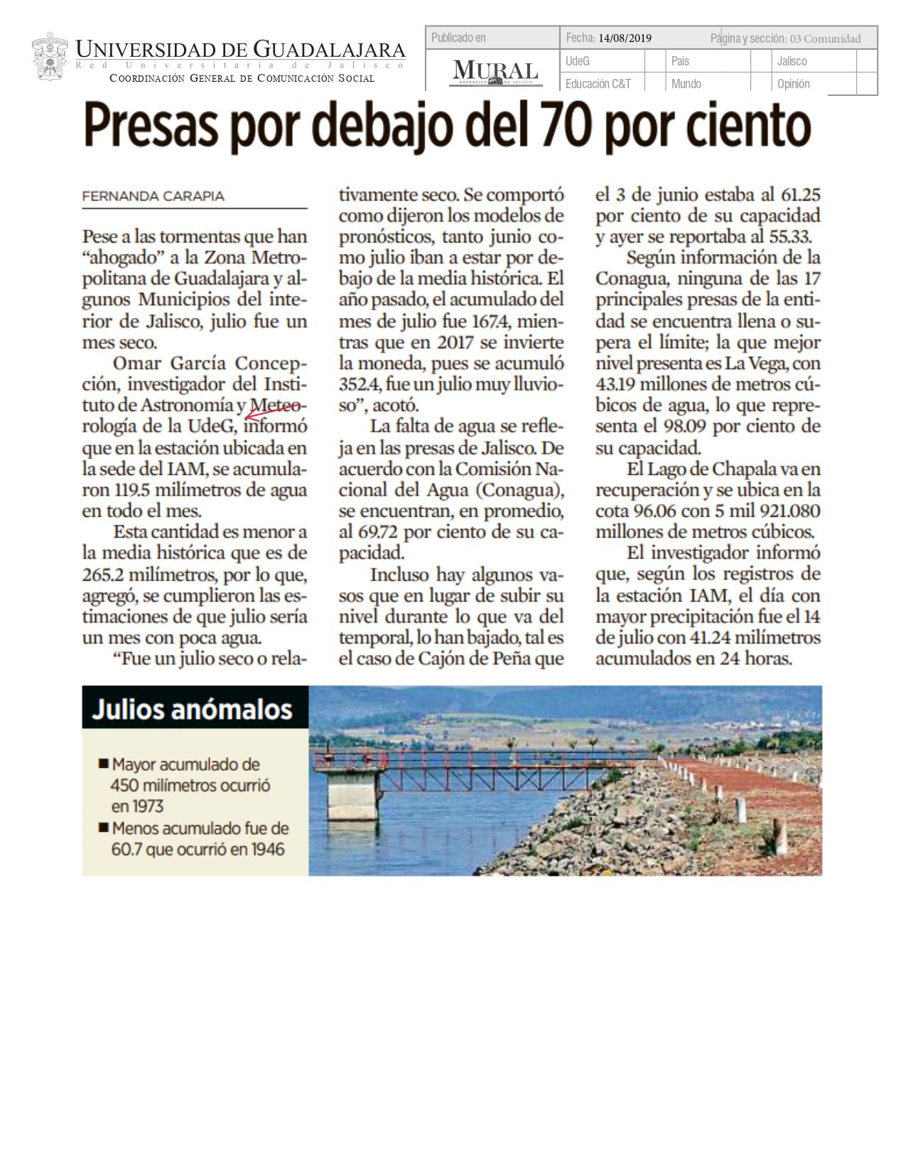 Miércoles 14 de Agosto de 2019