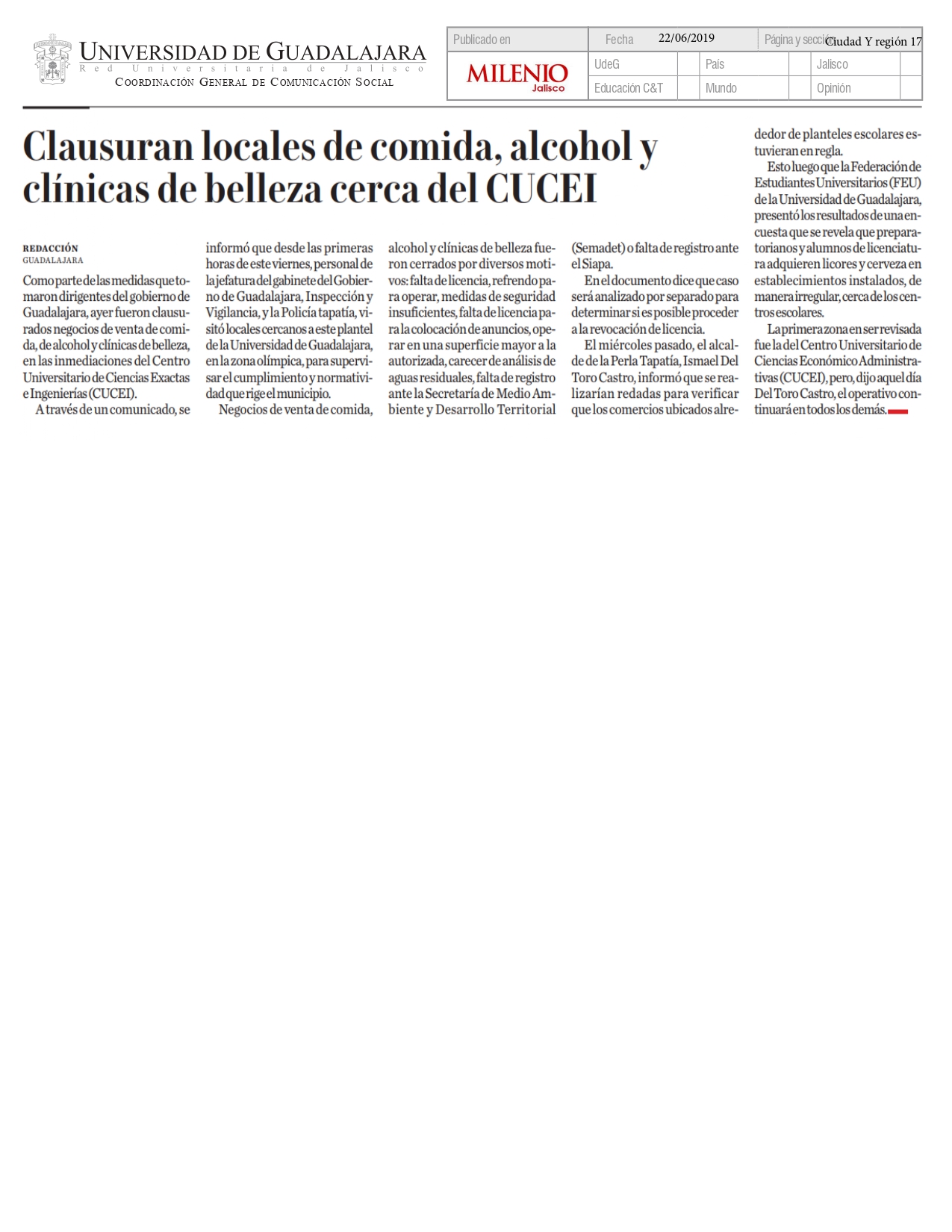 Jueves 22 de Agosto de 2019