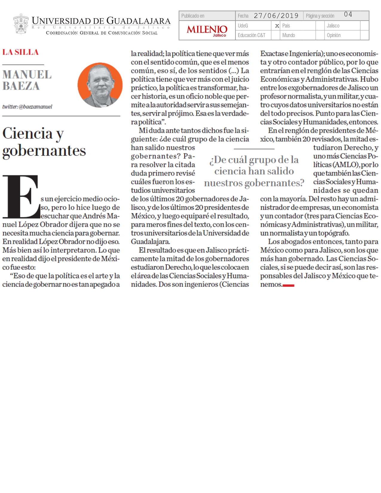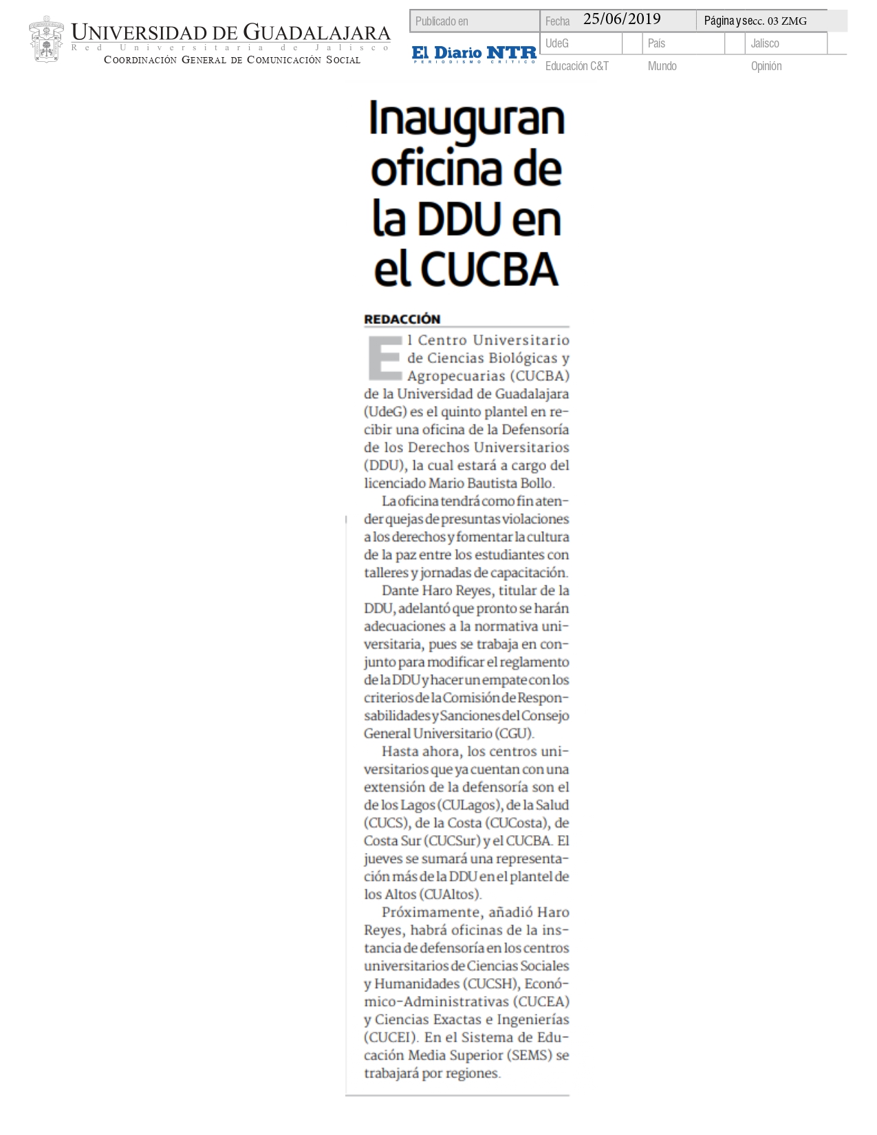 Lunes 01 de Julio de 2019