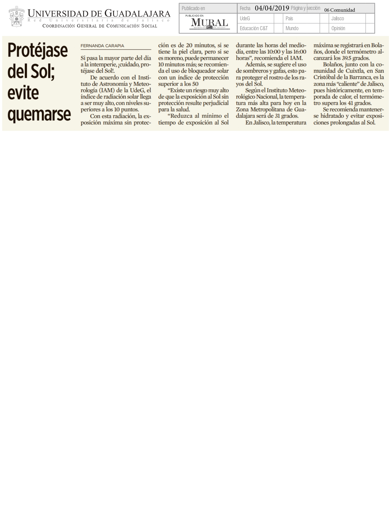 Jueves 04 de Abril de 2019
