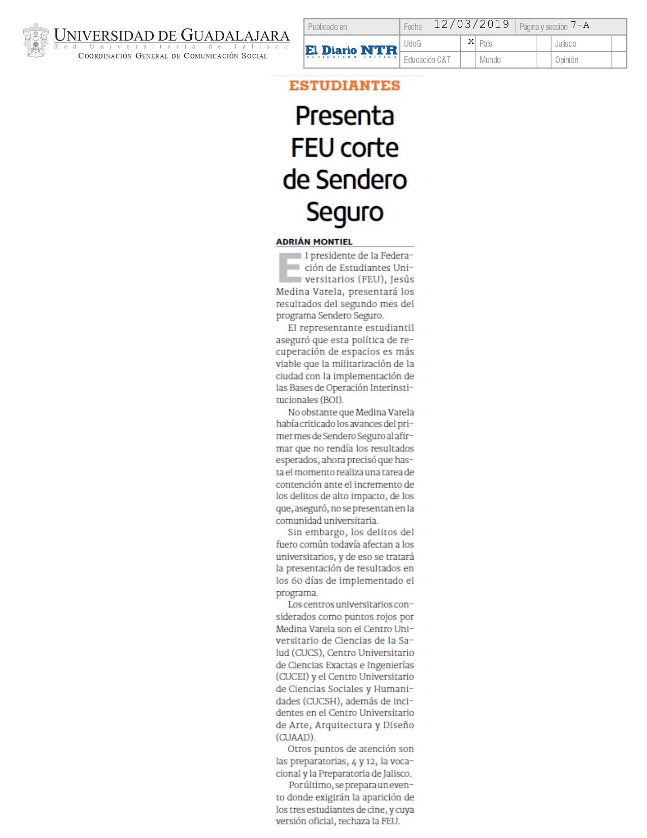 Martes 12 de Marzo de 2019