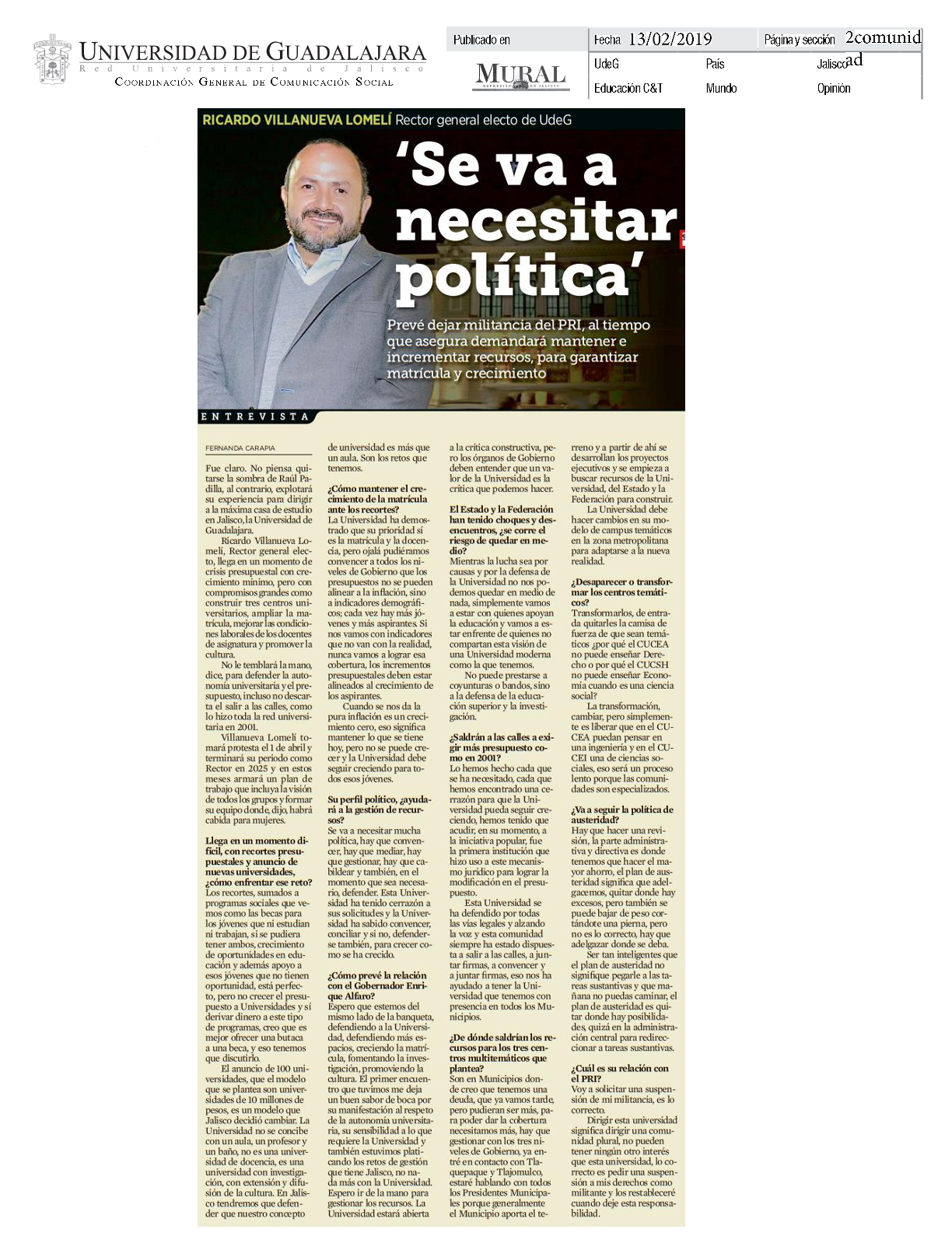Sábado 09 de Febrero de 2019