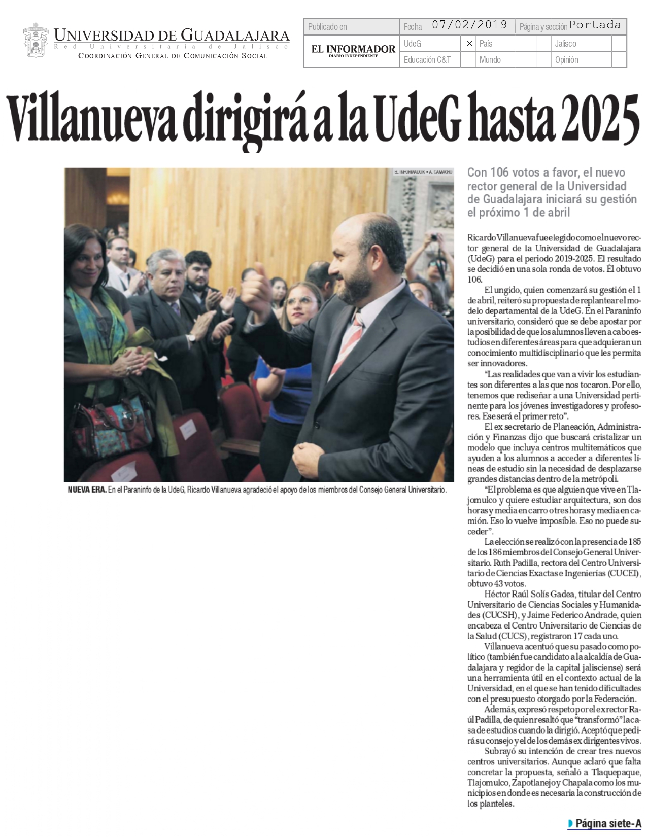 Jueves 07 de Febrero de 2019