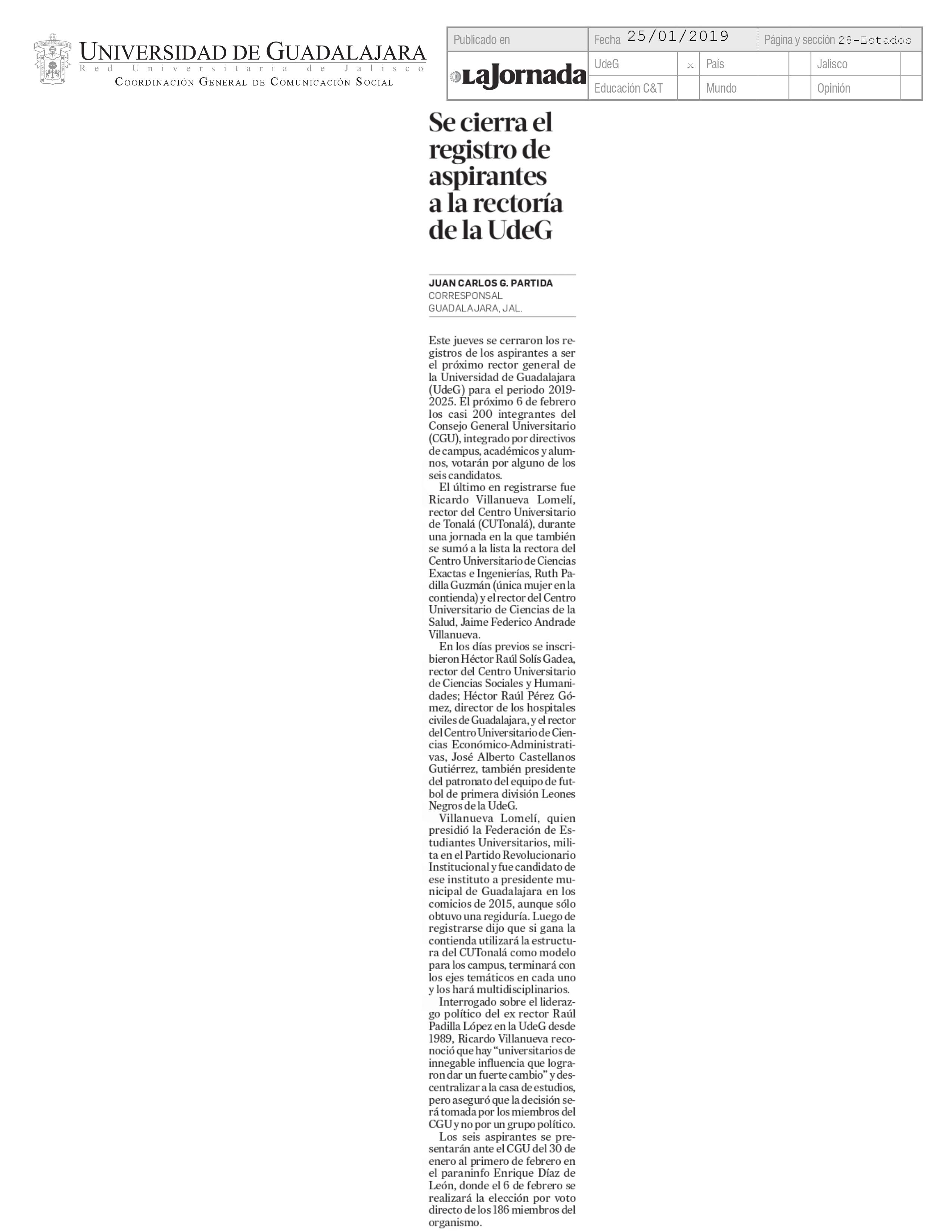 Viernes 25 de Enero de 2019