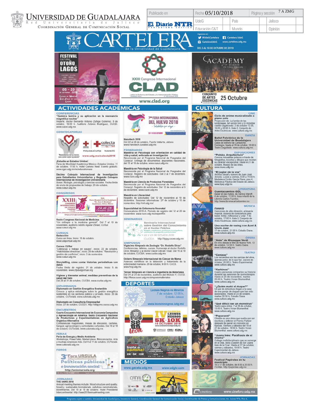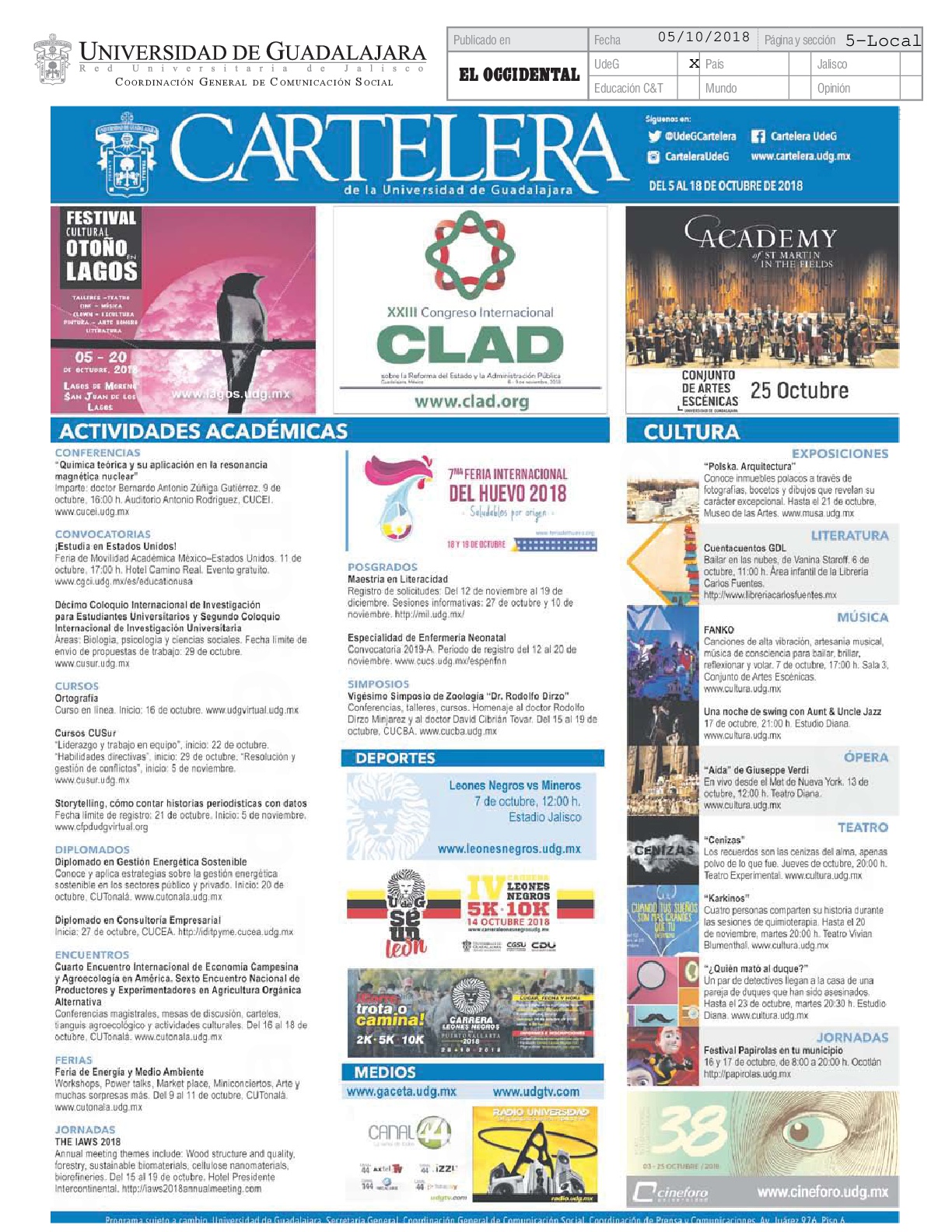 Viernes 05 de Octubre de 2018
